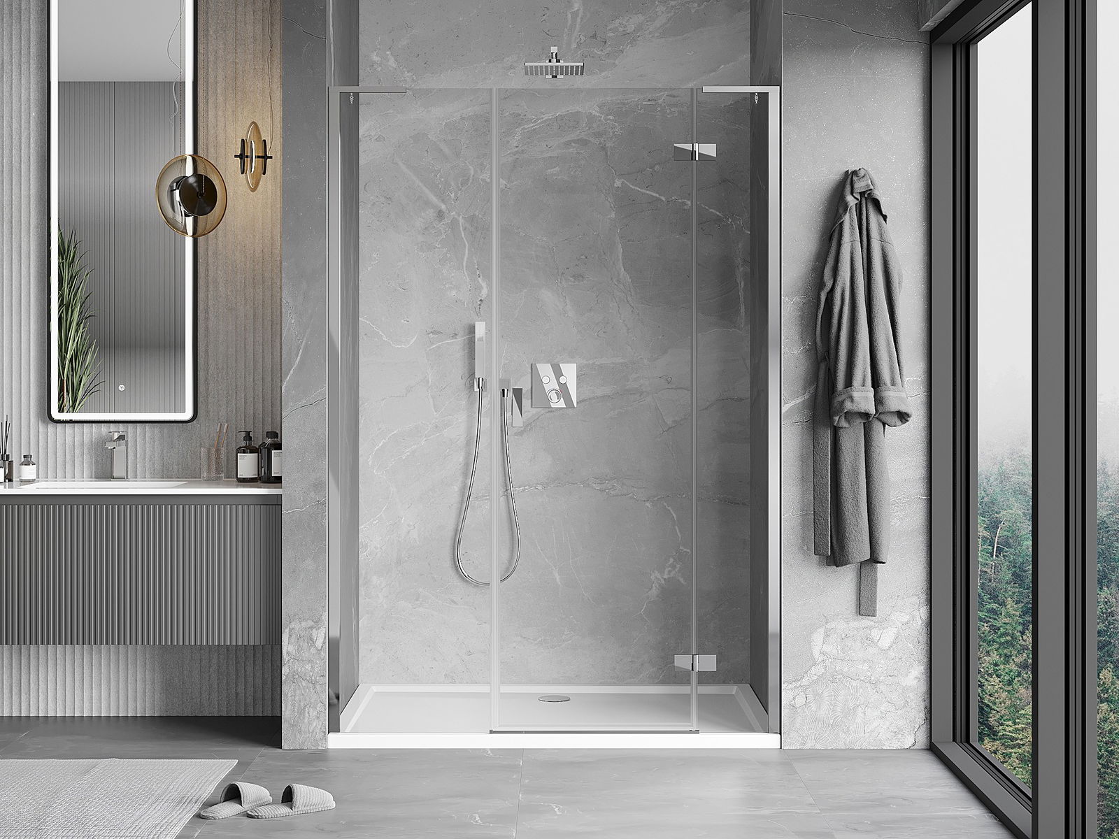 A handy and comfortable handle made from durable and resistant metal. Its trendy shape combined with a finish matched to the colour of the profiles gives the whole a modern and stylish look, highlighting the aesthetics of every bathroom.