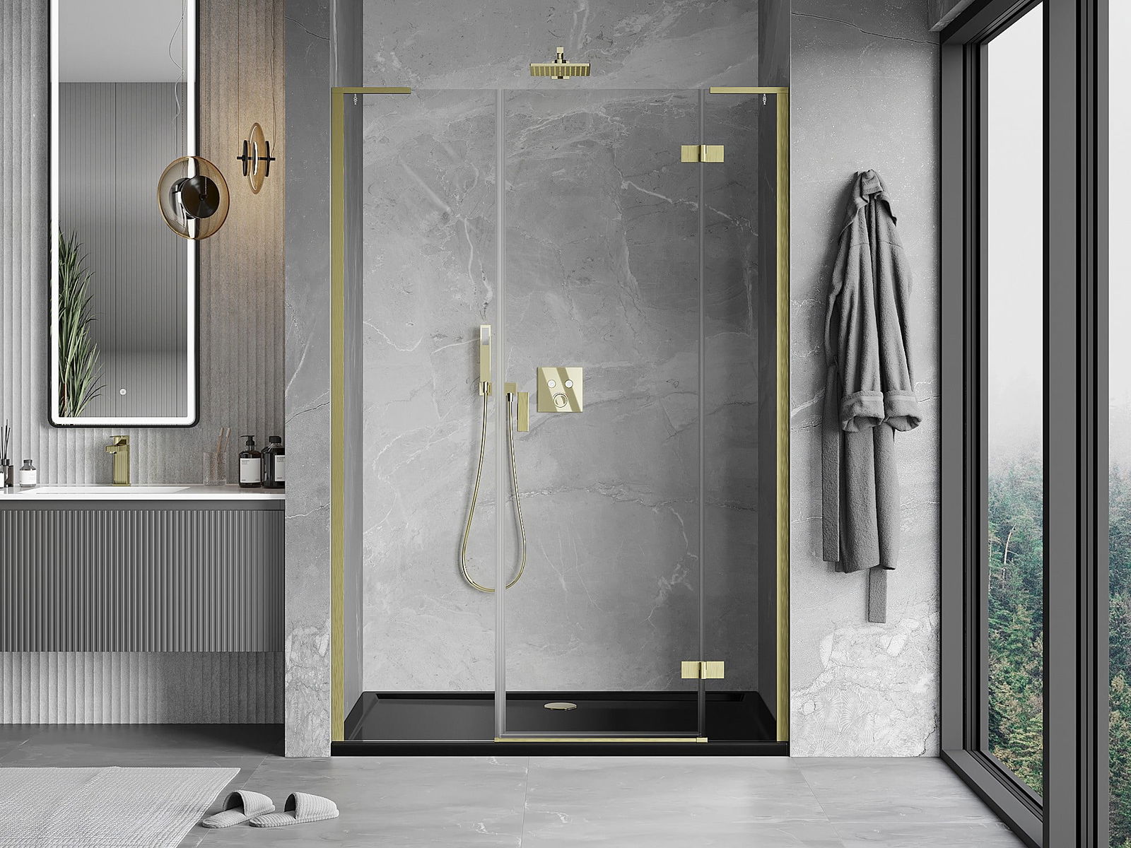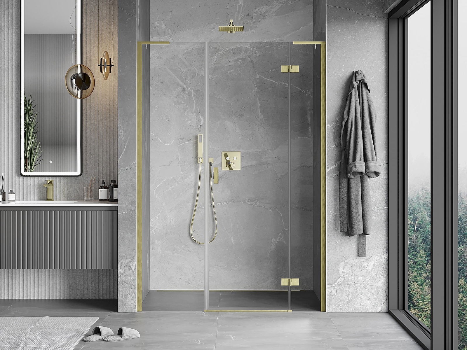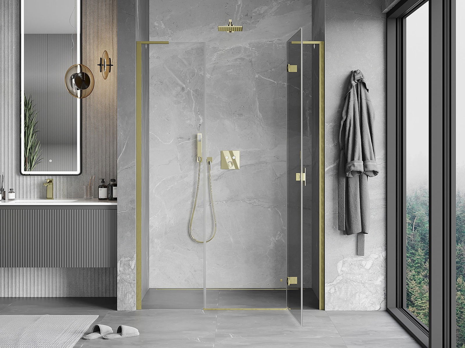A handy and comfortable handle made from durable and resistant metal. Its trendy shape combined with a finish matched to the colour of the profiles gives the whole a modern and stylish look, highlighting the aesthetics of every bathroom.
