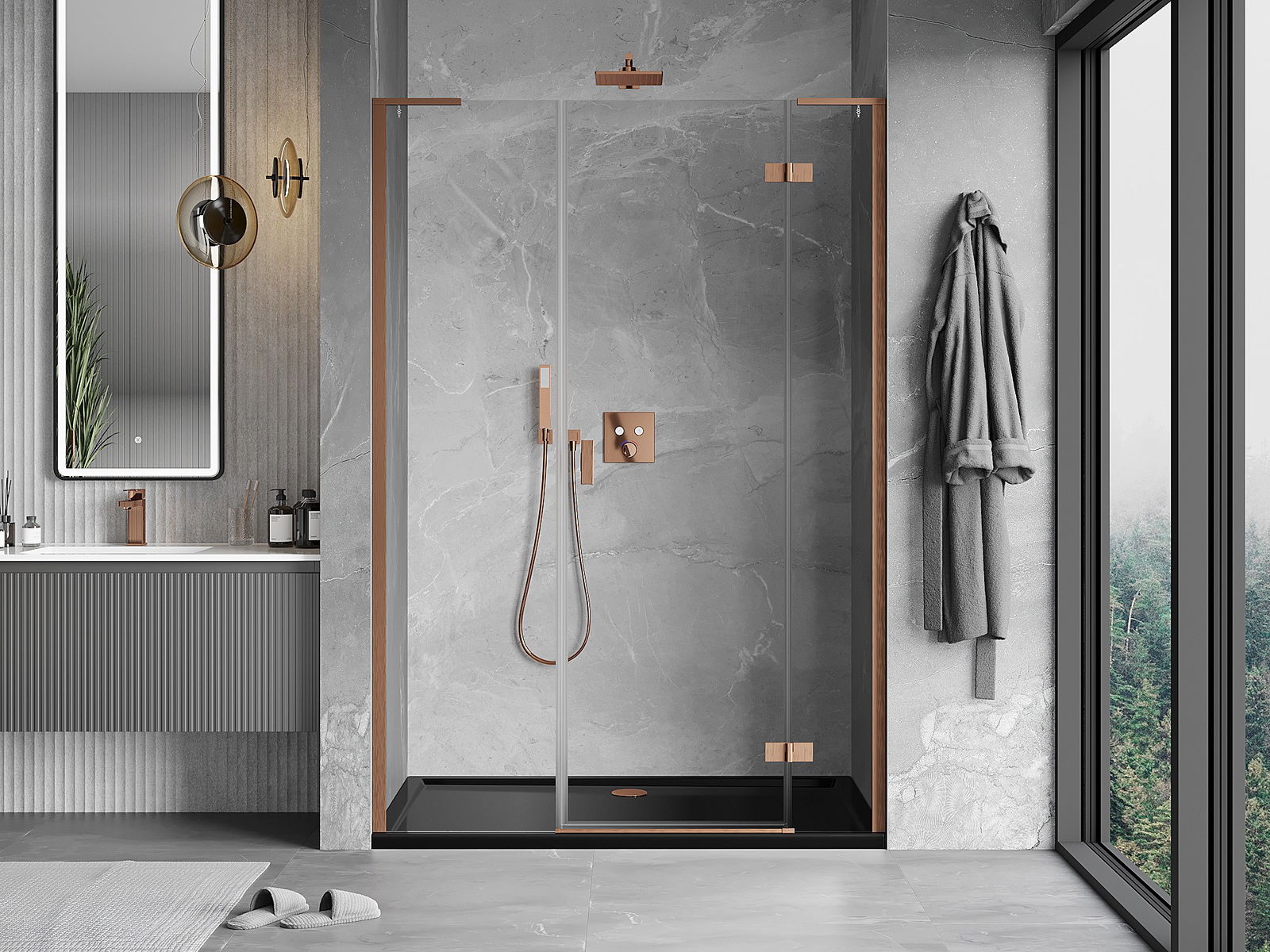A handy and comfortable handle made from durable and resistant metal. Its trendy shape combined with a finish matched to the colour of the profiles gives the whole a modern and stylish look, highlighting the aesthetics of every bathroom.