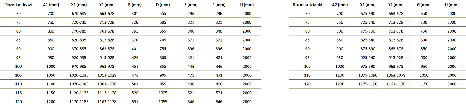 Size: 115x110 cm (left door 115 cm, panel 110 cm)