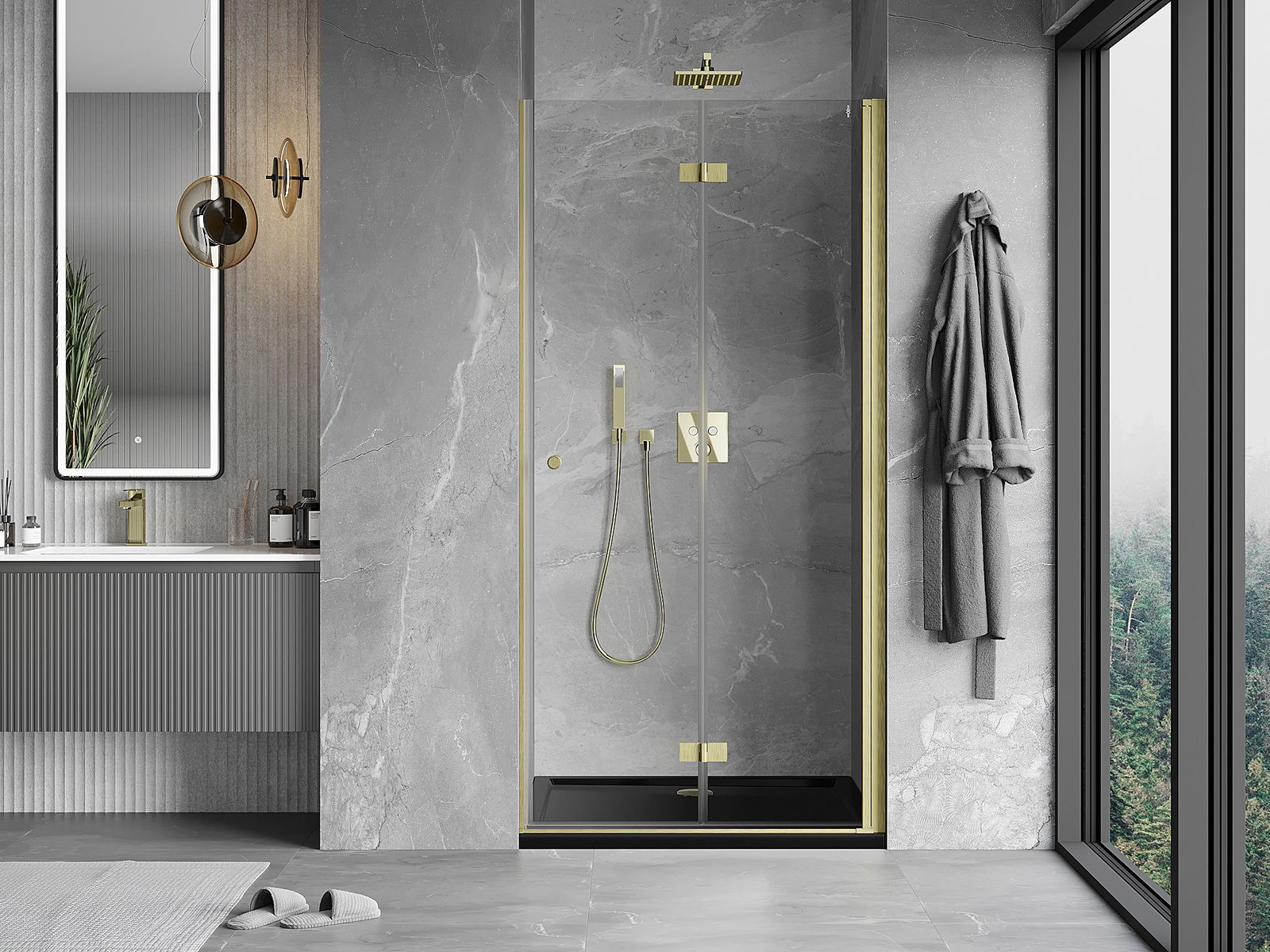 Mexen Mist-F folding shower door right 90 cm, transparent, brushed gold - 8A6-090-000-55-00-P