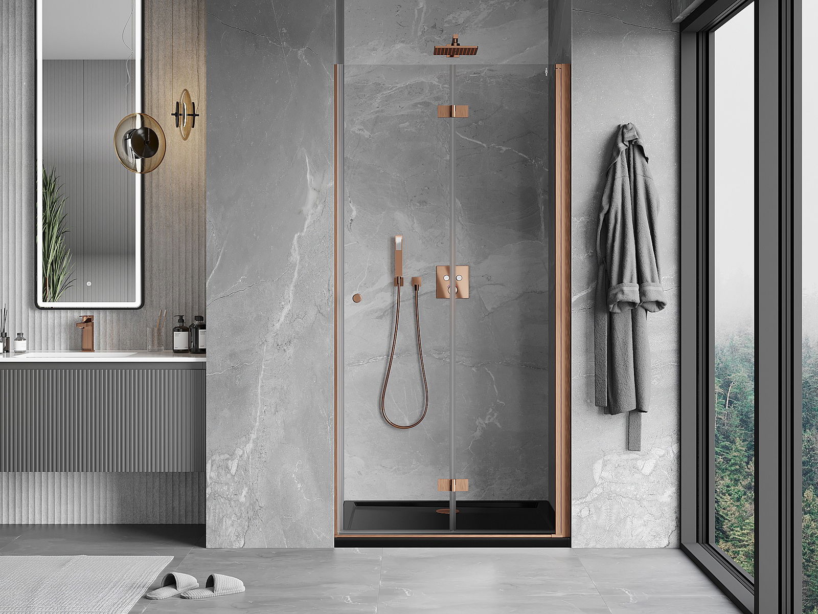 Mexen Mist-F folding shower door right 80 cm, transparent, brushed copper - 8A6-080-000-65-00-P