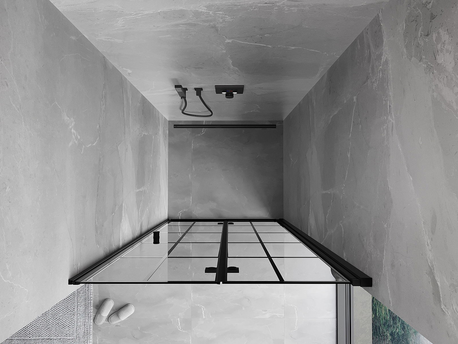 Mexen Mist-F 90 cm Right Folding Shower Door, Black Grid, Black - 8A6-090-000-70-77-P