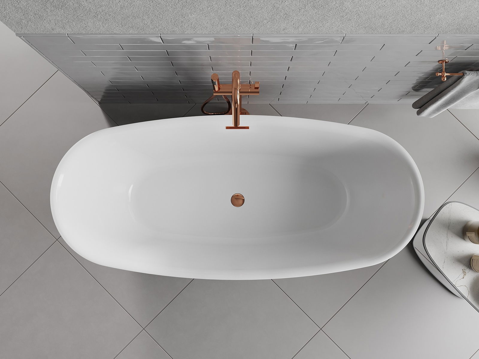 This is a modern material combining an elegant appearance with high durability. It is resistant to mechanical damage, easy to clean, and pleasant to the touch. The transparent form and thin rim of the bathtub add lightness and unique character, creating an impactful accent in bathroom design.