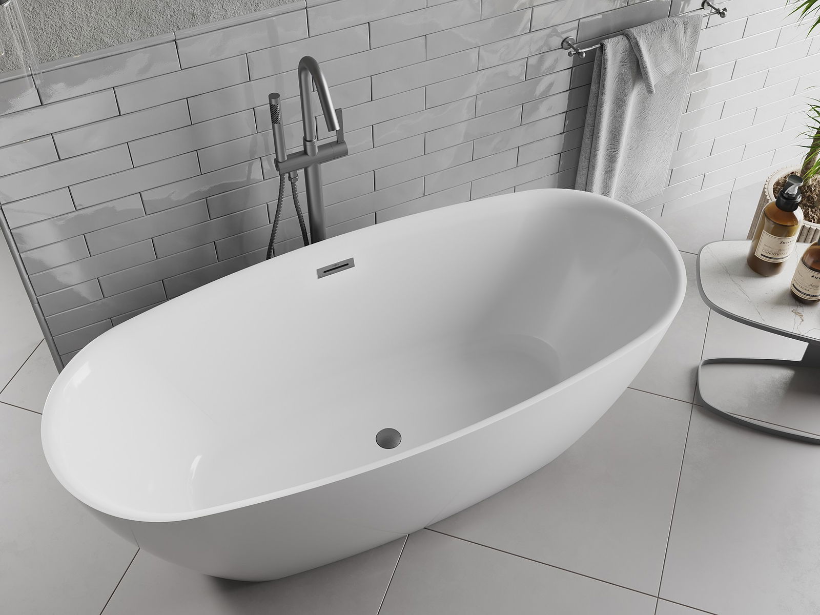 This is a modern material combining an elegant appearance with high durability. It is resistant to mechanical damage, easy to clean, and pleasant to the touch. The transparent form and thin rim of the bathtub add lightness and unique character, creating an impactful accent in bathroom design.