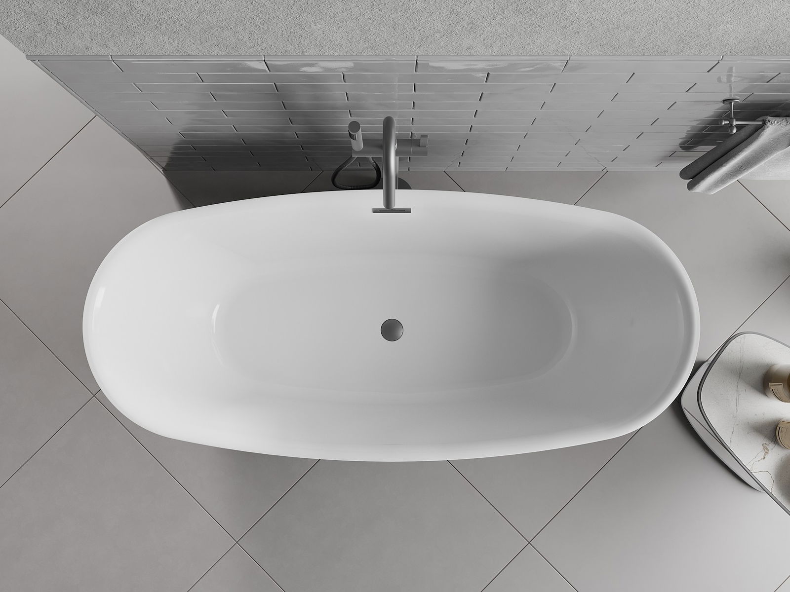 This is a modern material combining an elegant appearance with high durability. It is resistant to mechanical damage, easy to clean, and pleasant to the touch. The transparent form and thin rim of the bathtub add lightness and unique character, creating an impactful accent in bathroom design.