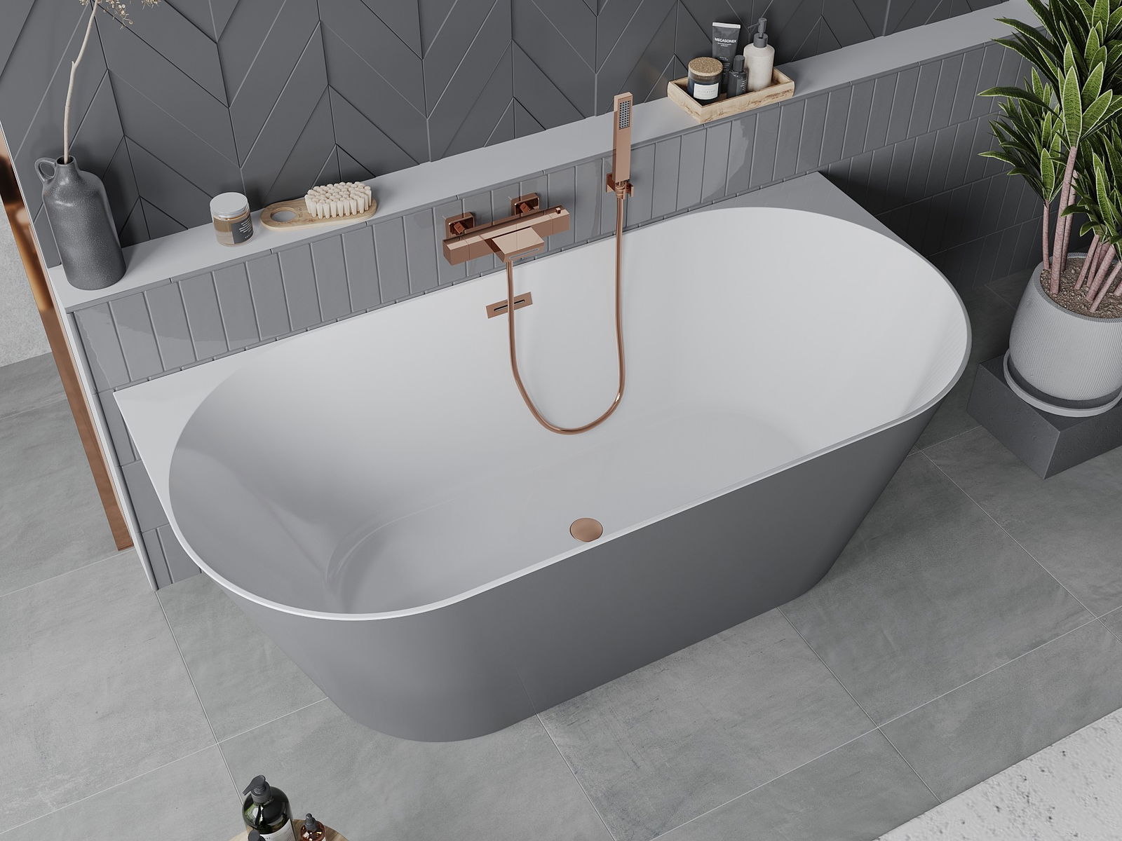 This is a modern material combining an elegant appearance with high durability. It is resistant to mechanical damage, easy to clean, and pleasant to the touch. The transparent form and thin rim of the bathtub add lightness and unique character, creating an impactful accent in bathroom design.
