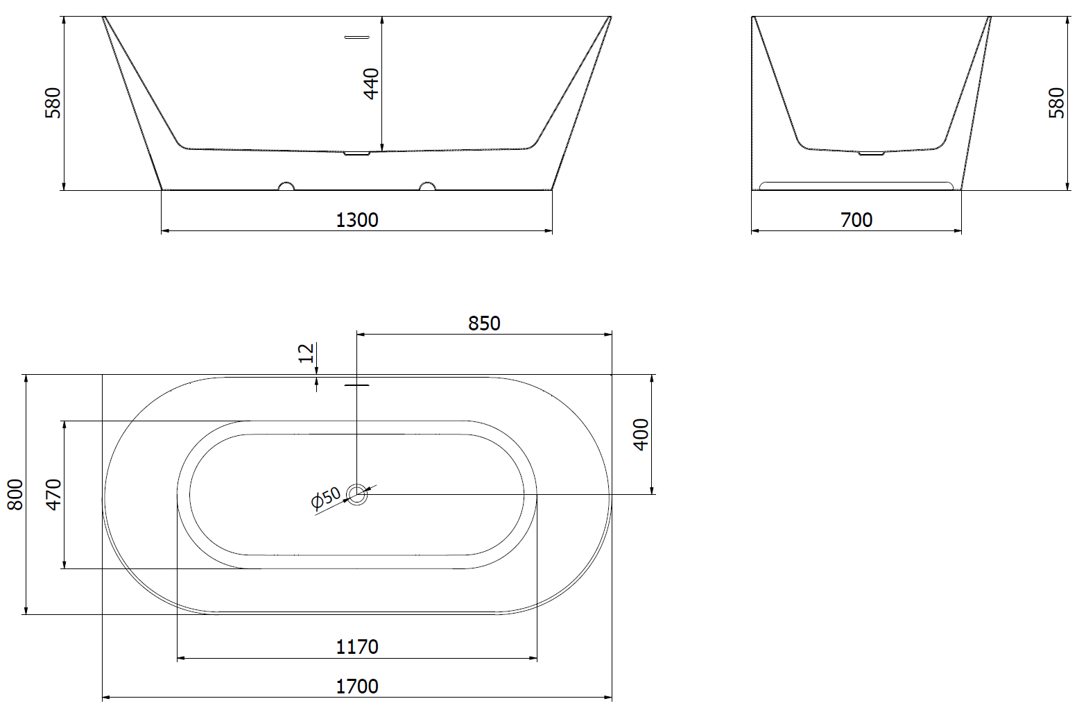 This is a modern material combining an elegant appearance with high durability. It is resistant to mechanical damage, easy to clean, and pleasant to the touch. The transparent form and thin rim of the bathtub add lightness and unique character, creating an impactful accent in bathroom design.