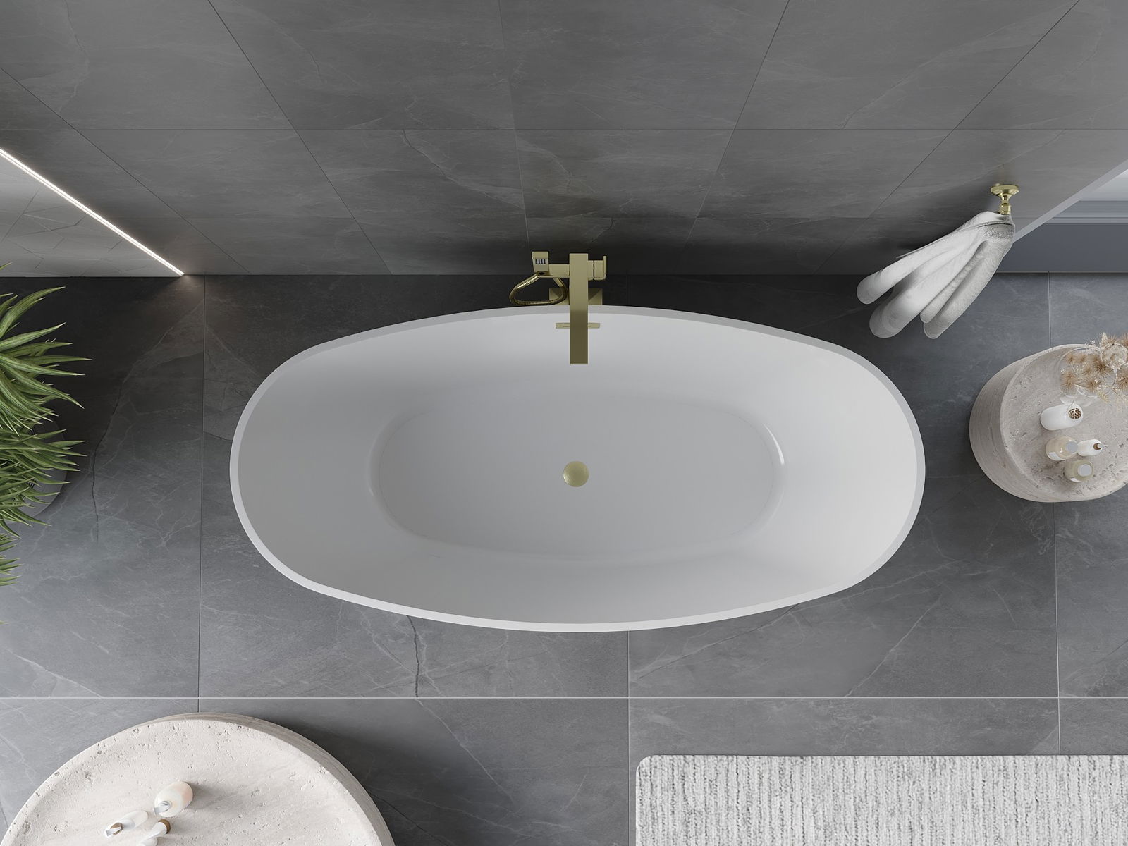 This is a modern material combining an elegant appearance with high durability. It is resistant to mechanical damage, easy to clean, and pleasant to the touch. The transparent form and thin rim of the bathtub add lightness and unique character, creating an impactful accent in bathroom design.