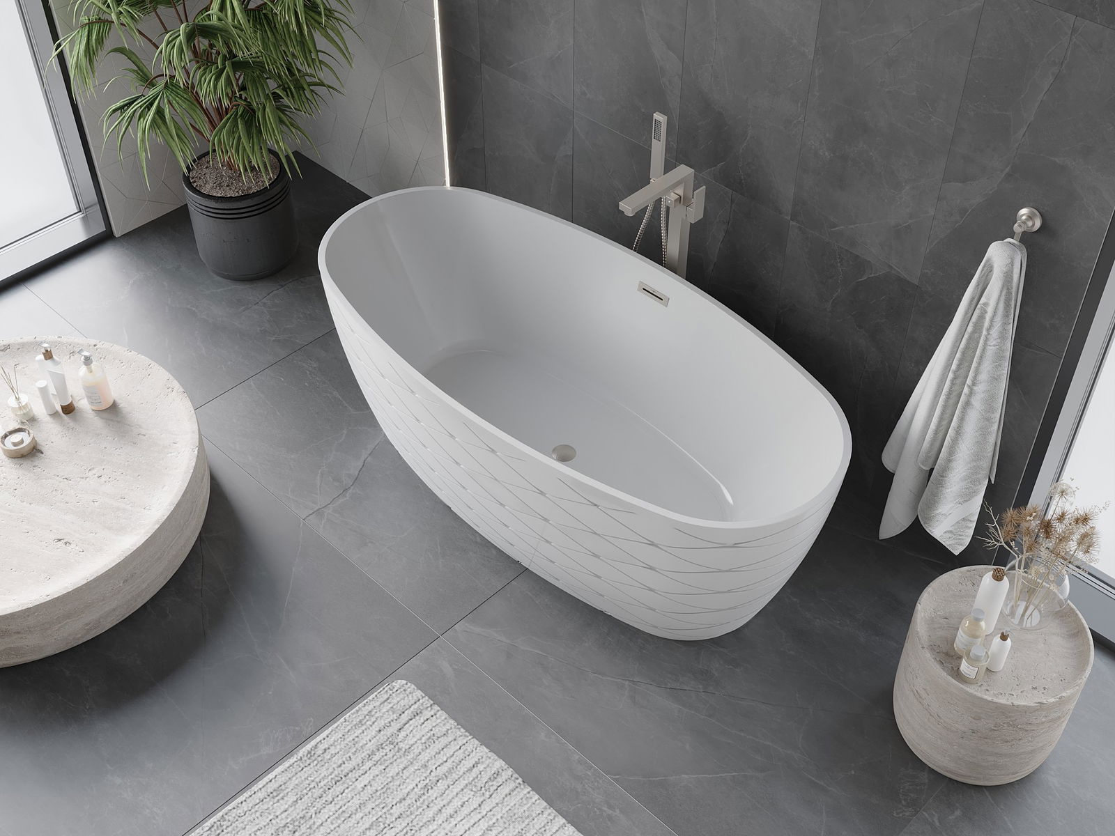 This is a modern material combining an elegant appearance with high durability. It is resistant to mechanical damage, easy to clean, and pleasant to the touch. The transparent form and thin rim of the bathtub add lightness and unique character, creating an impactful accent in bathroom design.