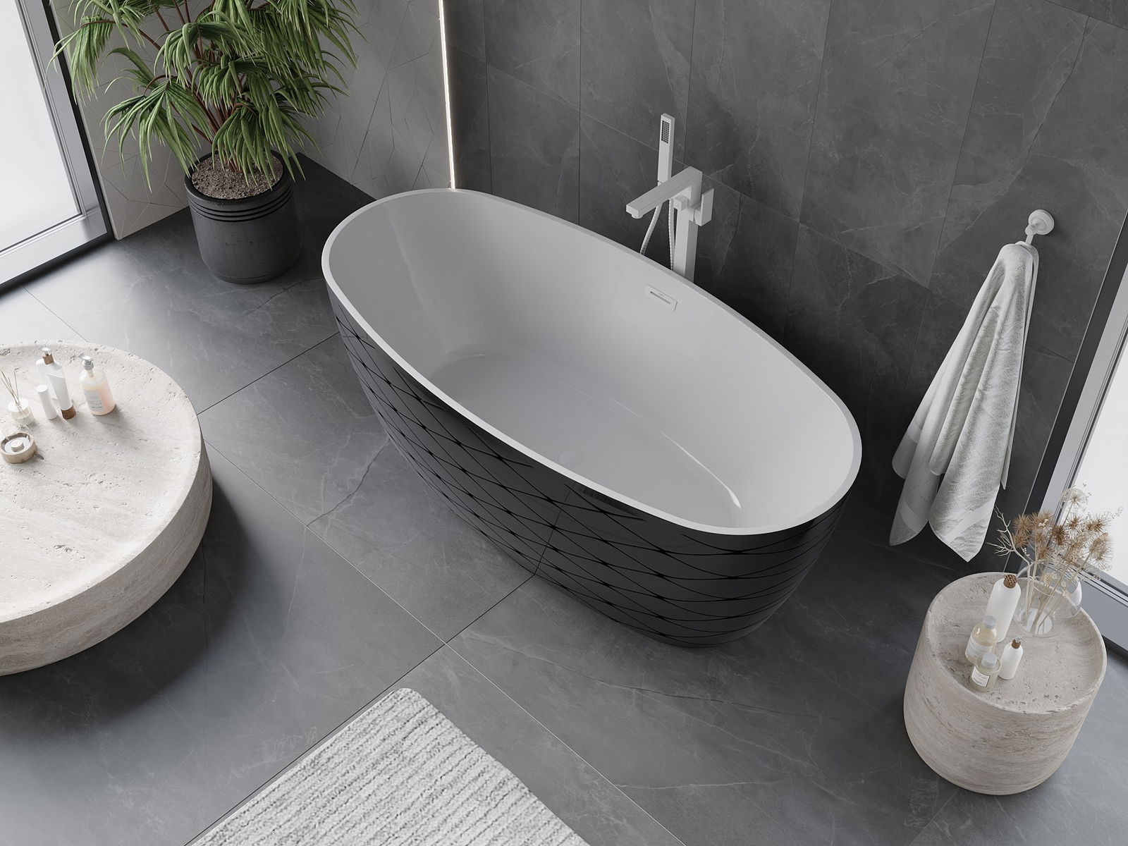 This is a modern material combining an elegant appearance with high durability. It is resistant to mechanical damage, easy to clean, and pleasant to the touch. The transparent form and thin rim of the bathtub add lightness and unique character, creating an impactful accent in bathroom design.