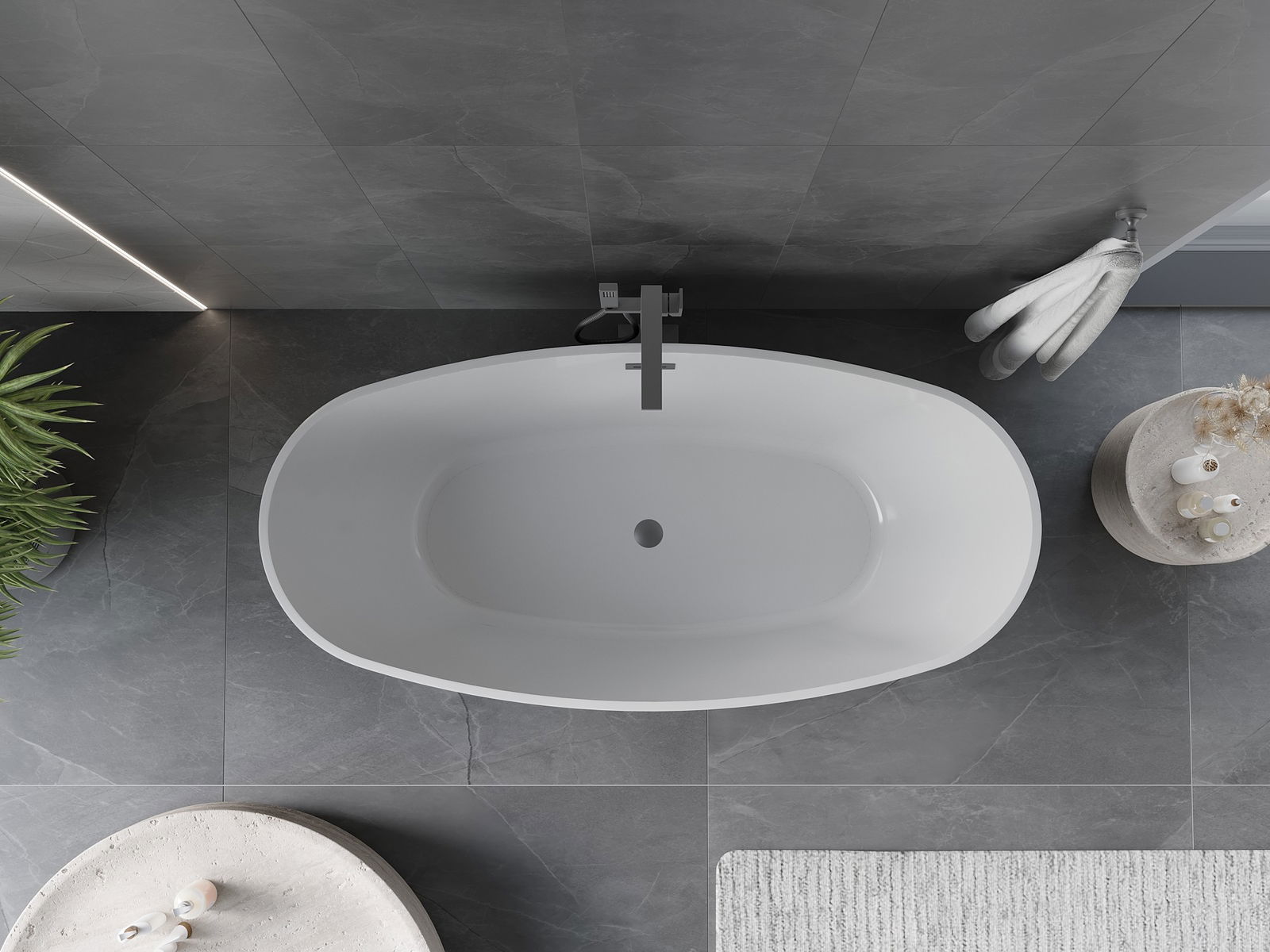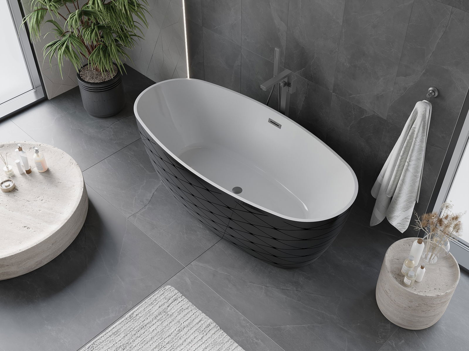 This is a modern material combining an elegant appearance with high durability. It is resistant to mechanical damage, easy to clean, and pleasant to the touch. The transparent form and thin rim of the bathtub add lightness and unique character, creating an impactful accent in bathroom design.