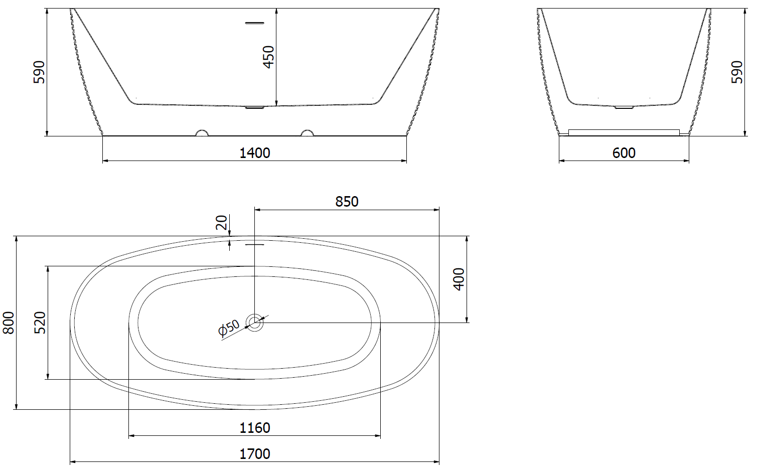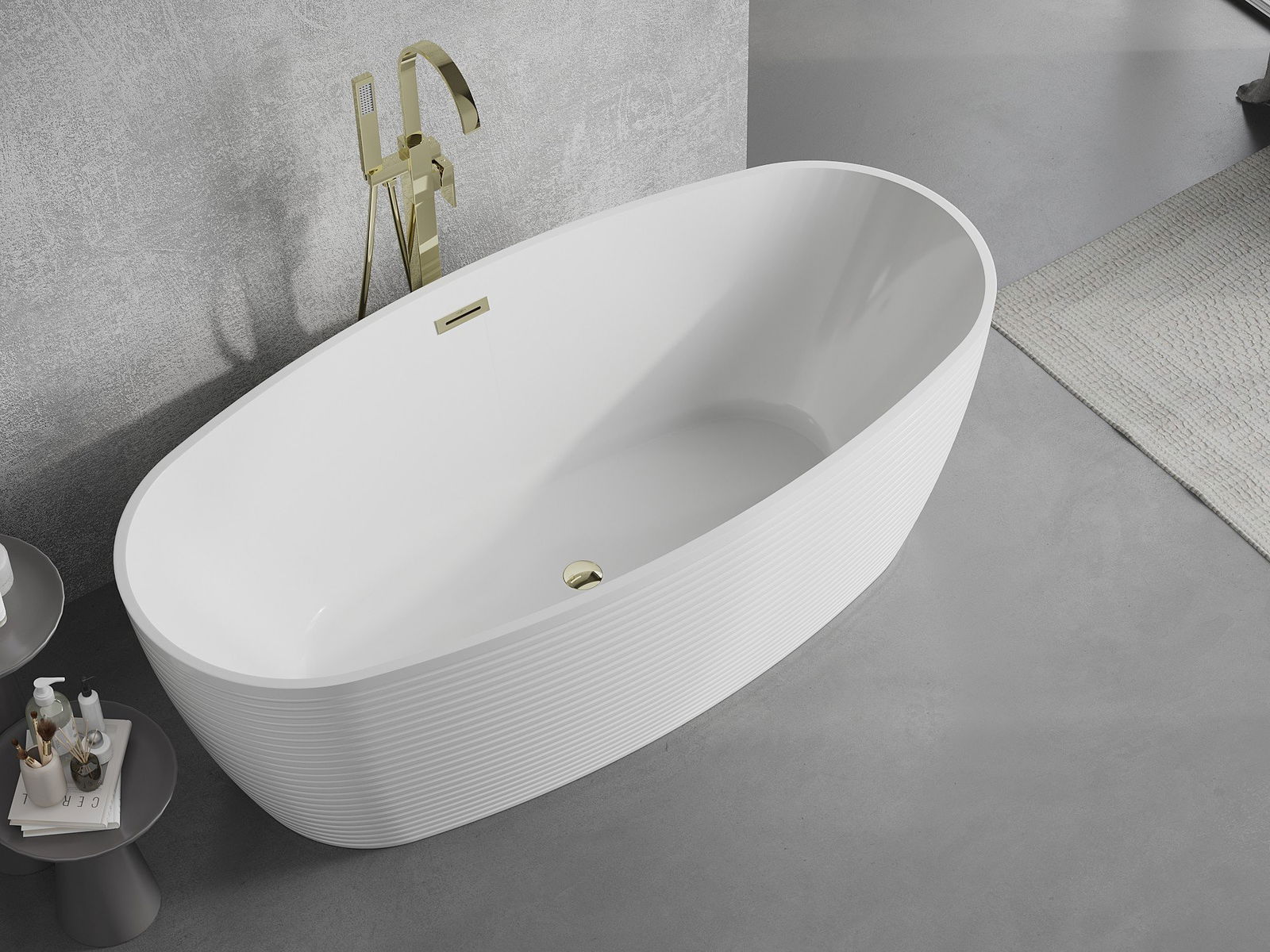 This is a modern material combining an elegant appearance with high durability. It is resistant to mechanical damage, easy to clean, and pleasant to the touch. The transparent form and thin rim of the bathtub add lightness and unique character, creating an impactful accent in bathroom design.
