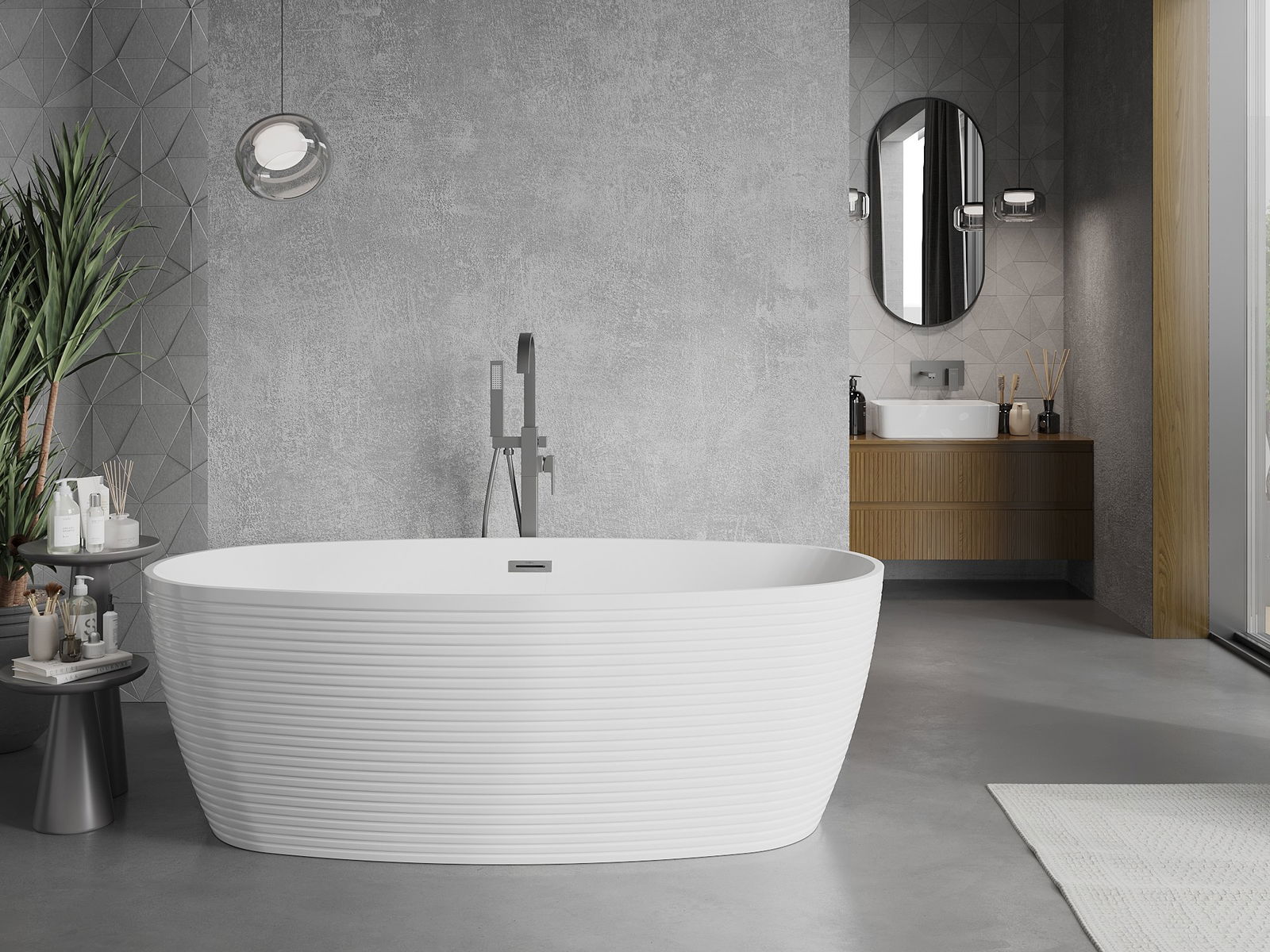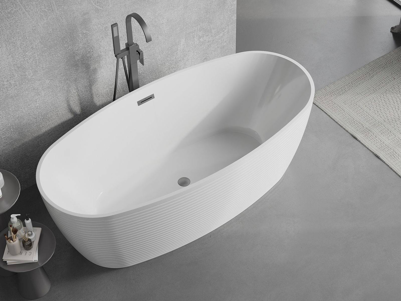 This is a modern material combining an elegant appearance with high durability. It is resistant to mechanical damage, easy to clean, and pleasant to the touch. The transparent form and thin rim of the bathtub add lightness and unique character, creating an impactful accent in bathroom design.