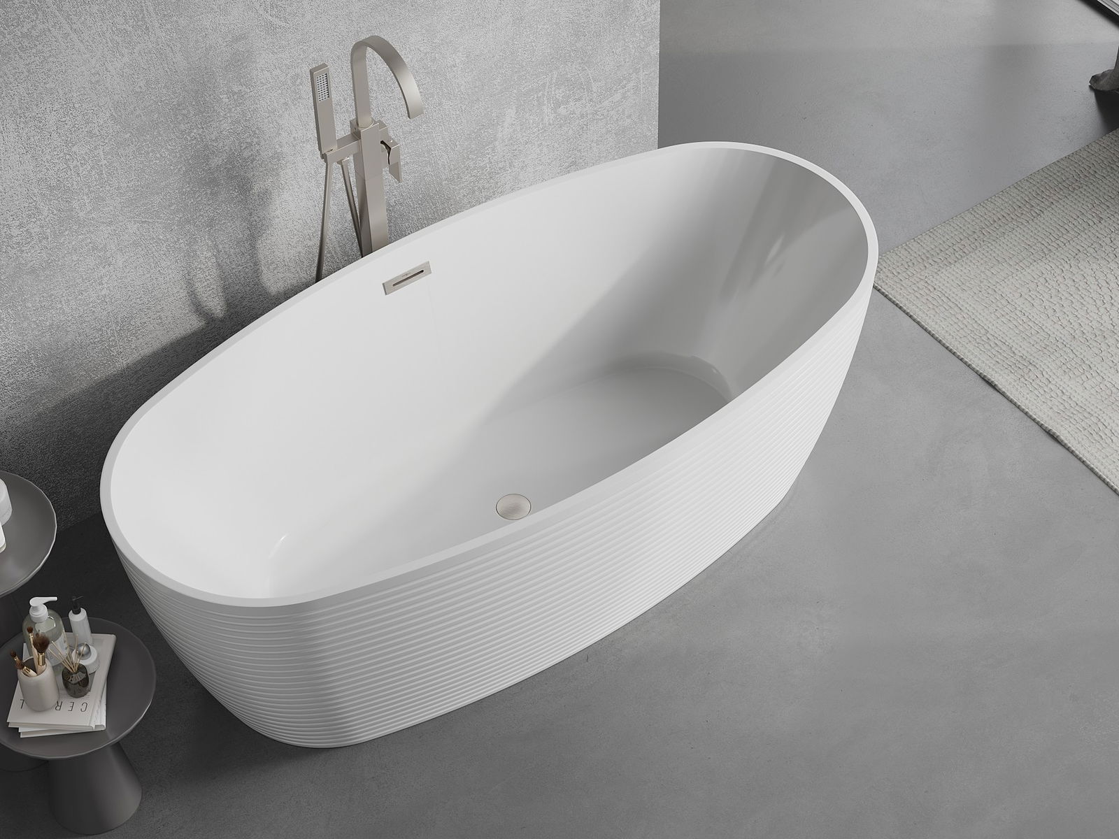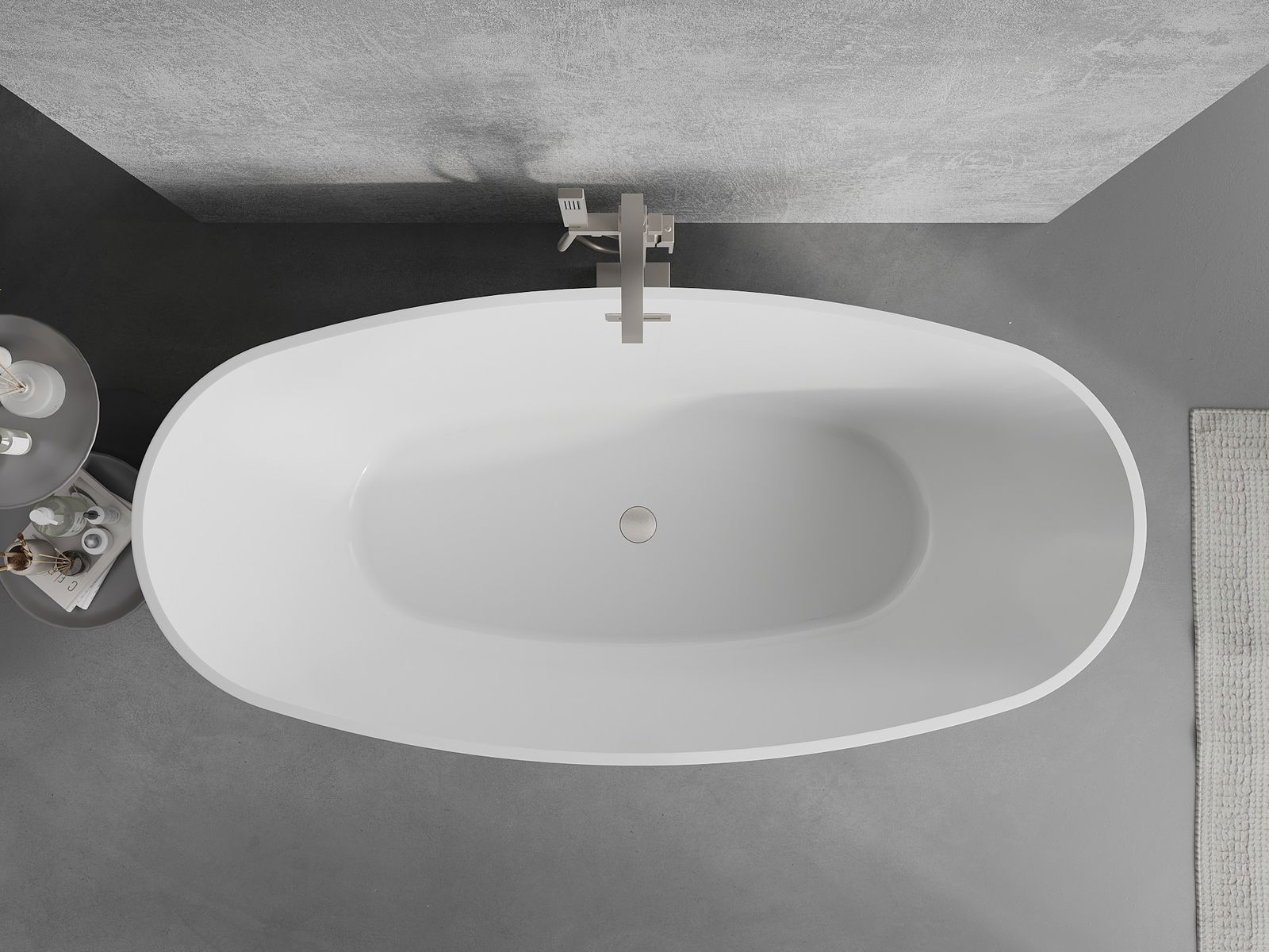 This is a modern material combining an elegant appearance with high durability. It is resistant to mechanical damage, easy to clean, and pleasant to the touch. The transparent form and thin rim of the bathtub add lightness and unique character, creating an impactful accent in bathroom design.