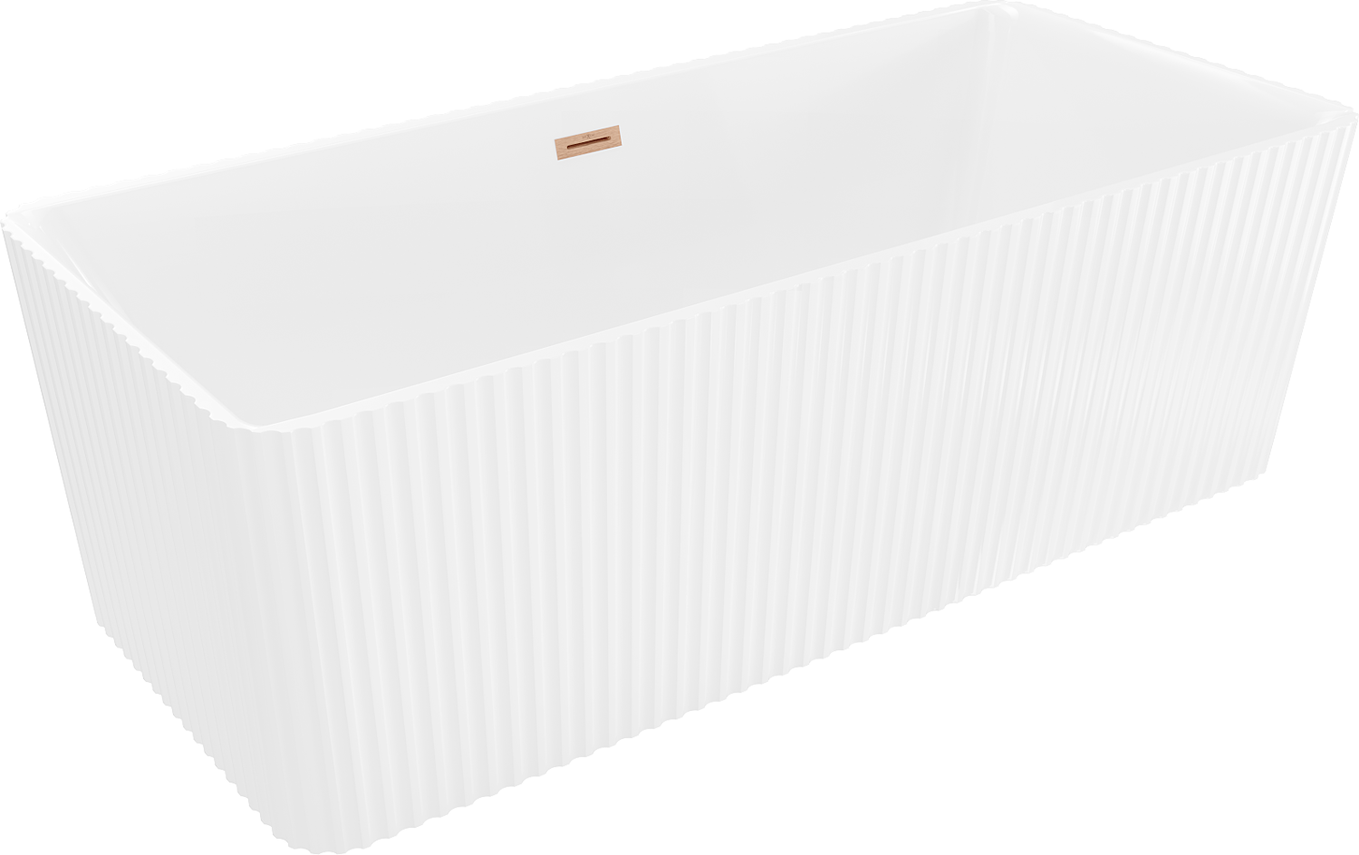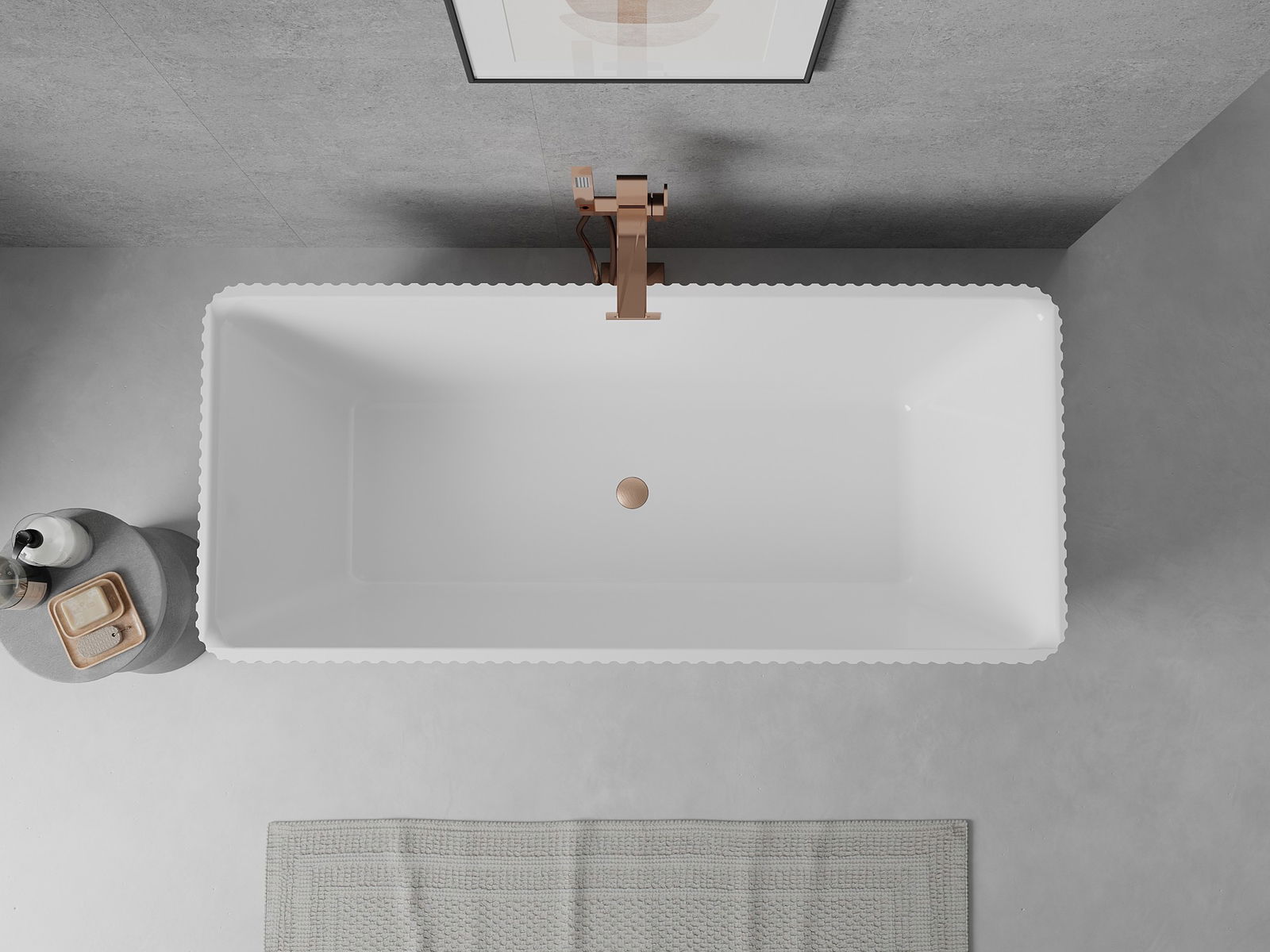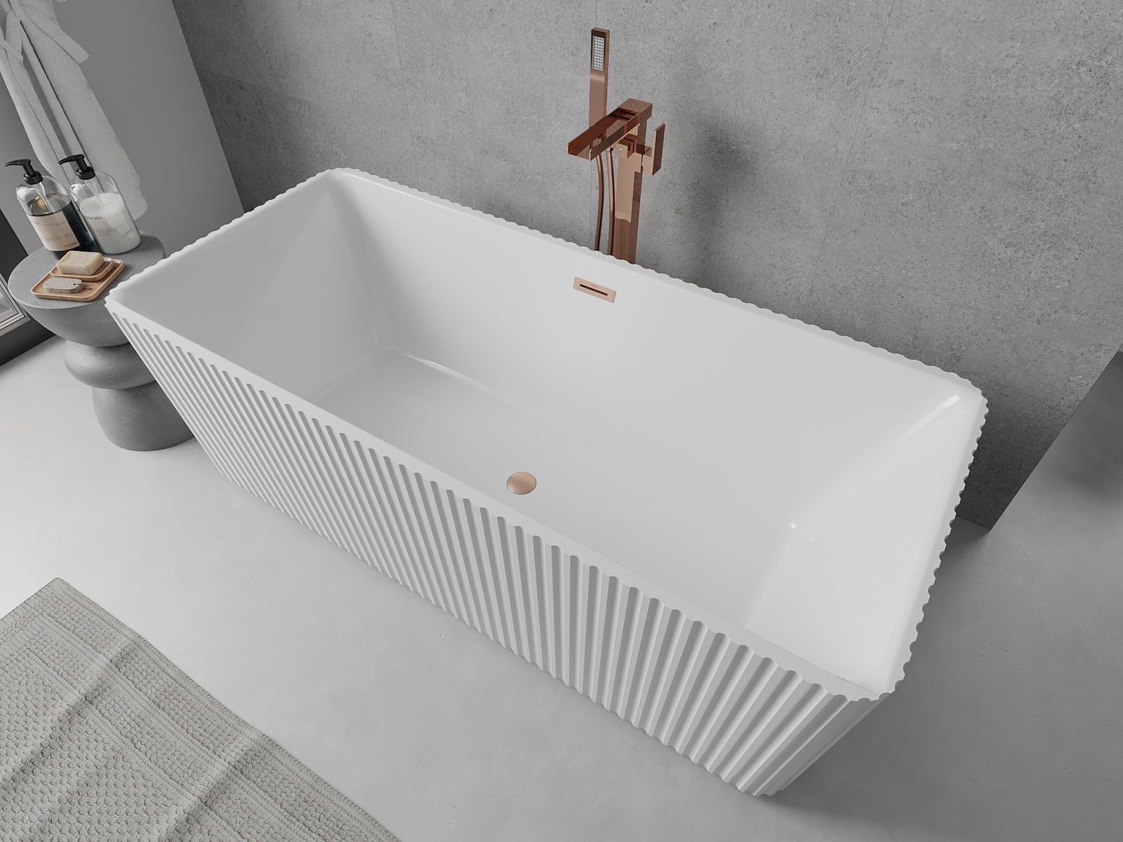 Mexen Nila freestanding ribbed bath 170 x 75 cm, white, brushed copper overflow - 52841708000-65