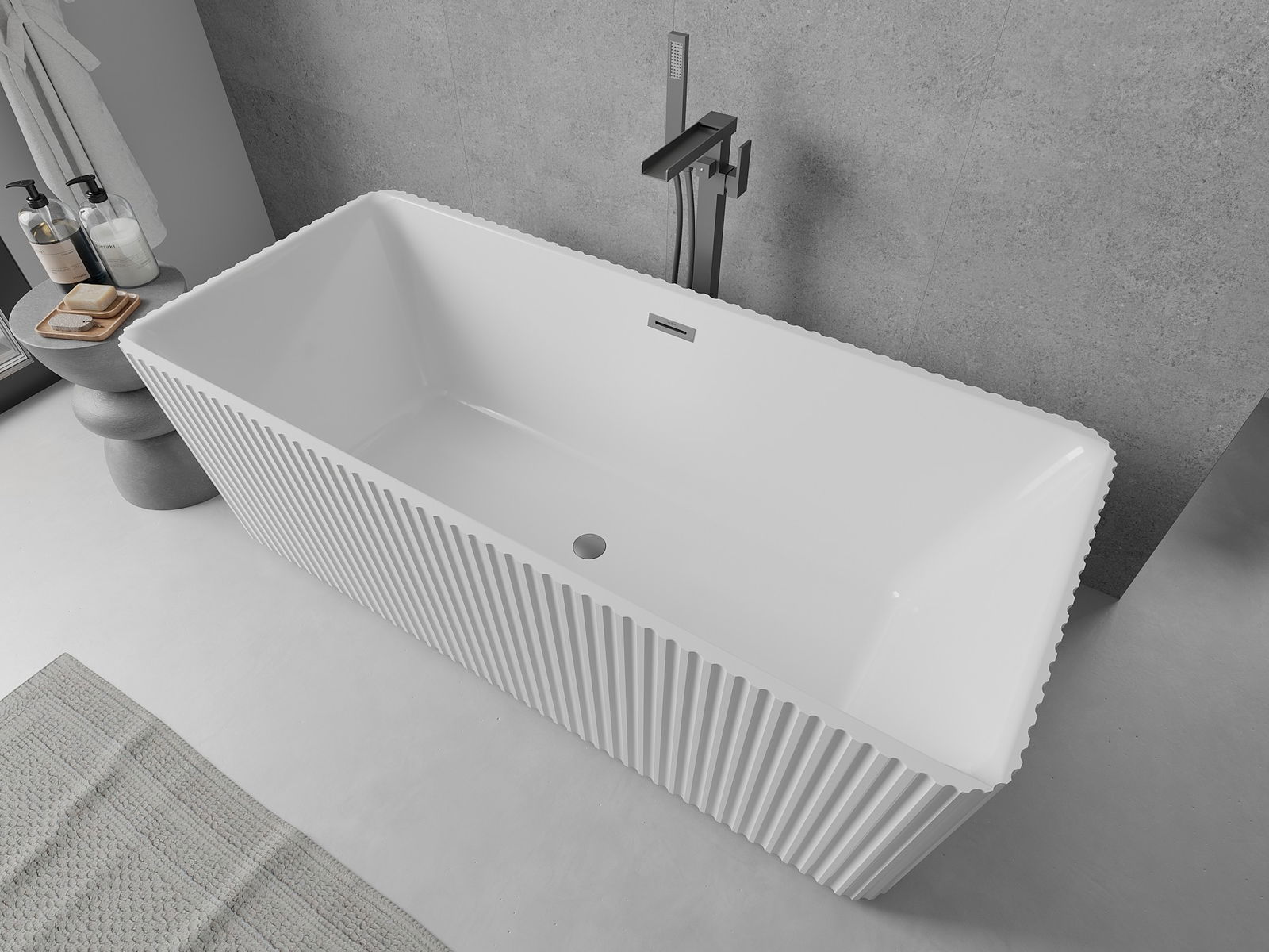 This is a modern material combining an elegant appearance with high durability. It is resistant to mechanical damage, easy to clean, and pleasant to the touch. The transparent form and thin rim of the bathtub add lightness and unique character, creating an impactful accent in bathroom design.