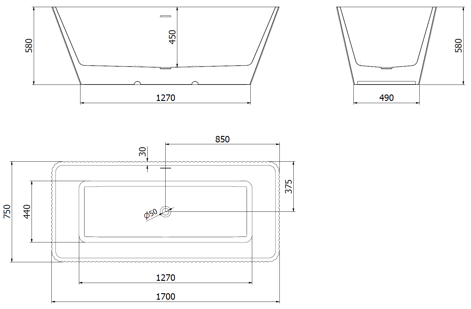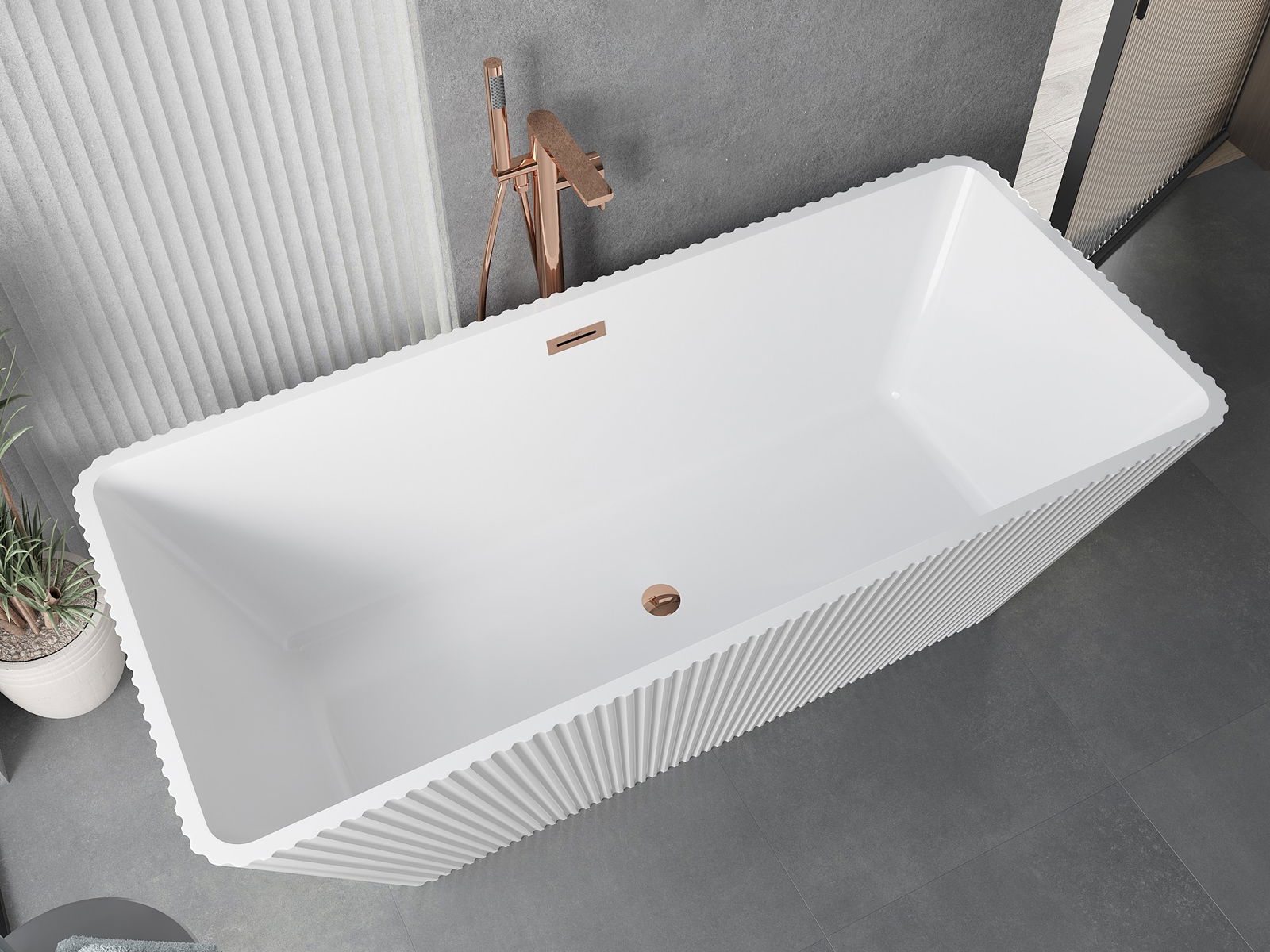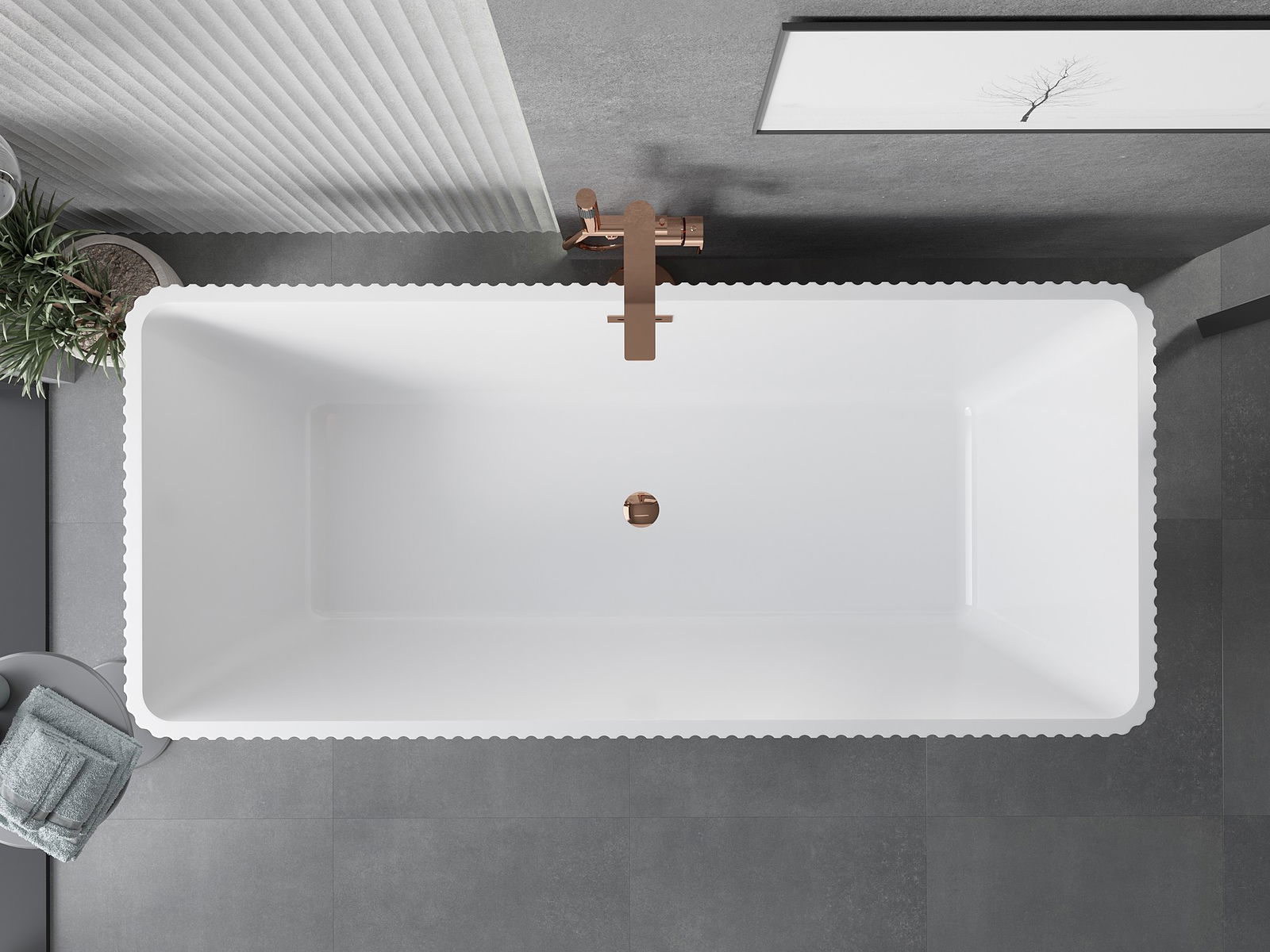 This is a modern material combining an elegant appearance with high durability. It is resistant to mechanical damage, easy to clean, and pleasant to the touch. The transparent form and thin rim of the bathtub add lightness and unique character, creating an impactful accent in bathroom design.