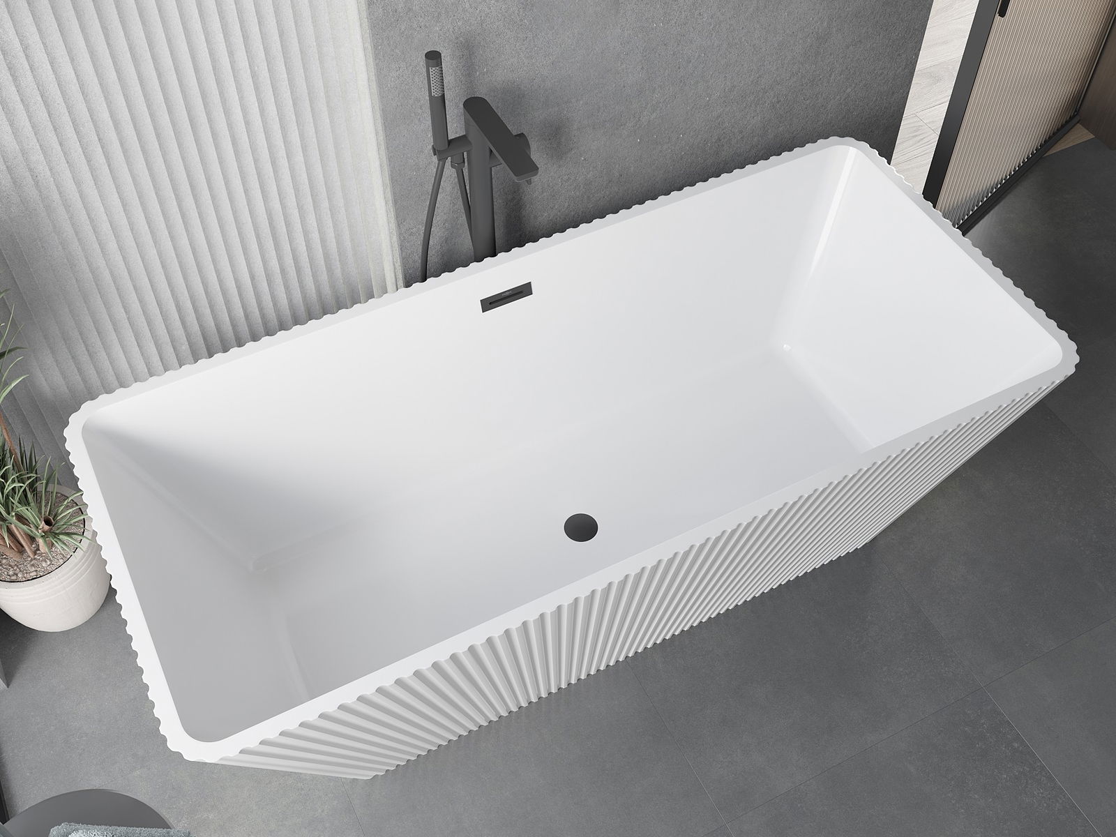 This is a modern material combining an elegant appearance with high durability. It is resistant to mechanical damage, easy to clean, and pleasant to the touch. The transparent form and thin rim of the bathtub add lightness and unique character, creating an impactful accent in bathroom design.