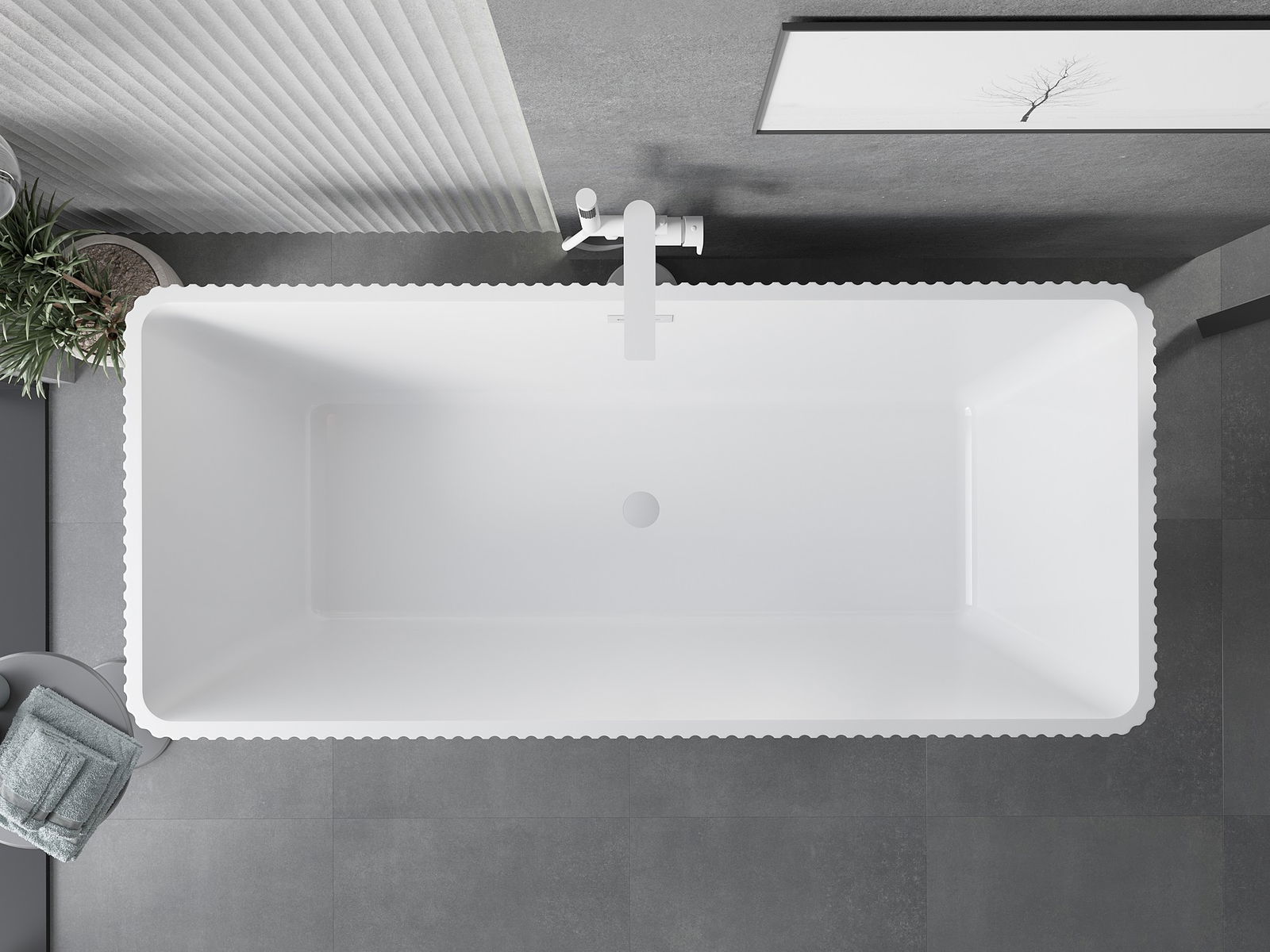 This is a modern material combining an elegant appearance with high durability. It is resistant to mechanical damage, easy to clean, and pleasant to the touch. The transparent form and thin rim of the bathtub add lightness and unique character, creating an impactful accent in bathroom design.