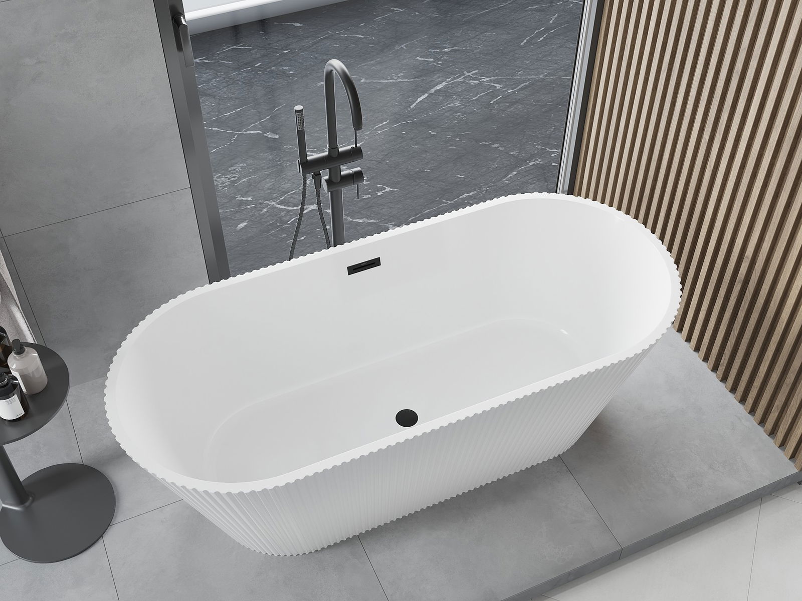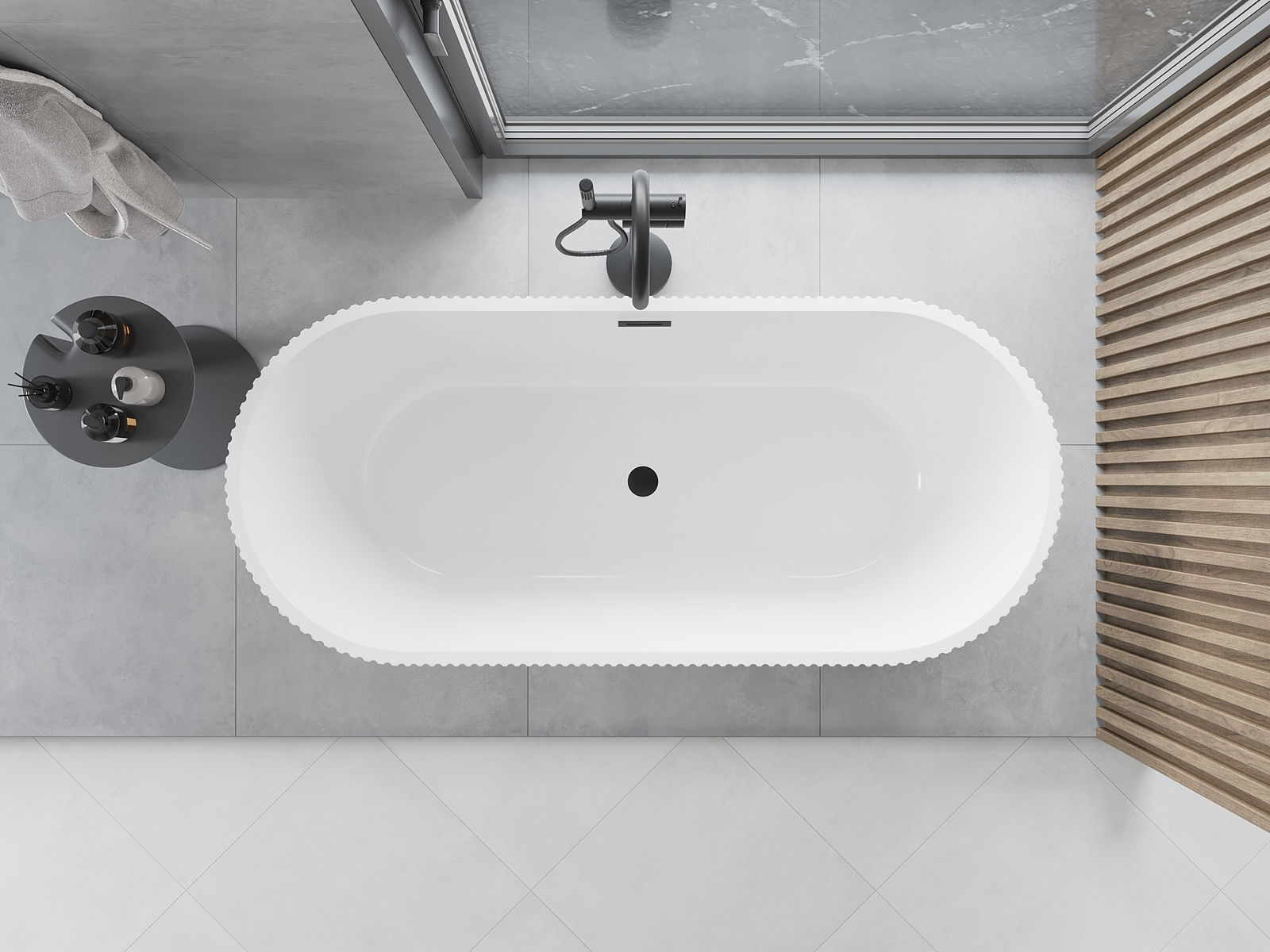 This is a modern material combining an elegant appearance with high durability. It is resistant to mechanical damage, easy to clean, and pleasant to the touch. The transparent form and thin rim of the bathtub add lightness and unique character, creating an impactful accent in bathroom design.