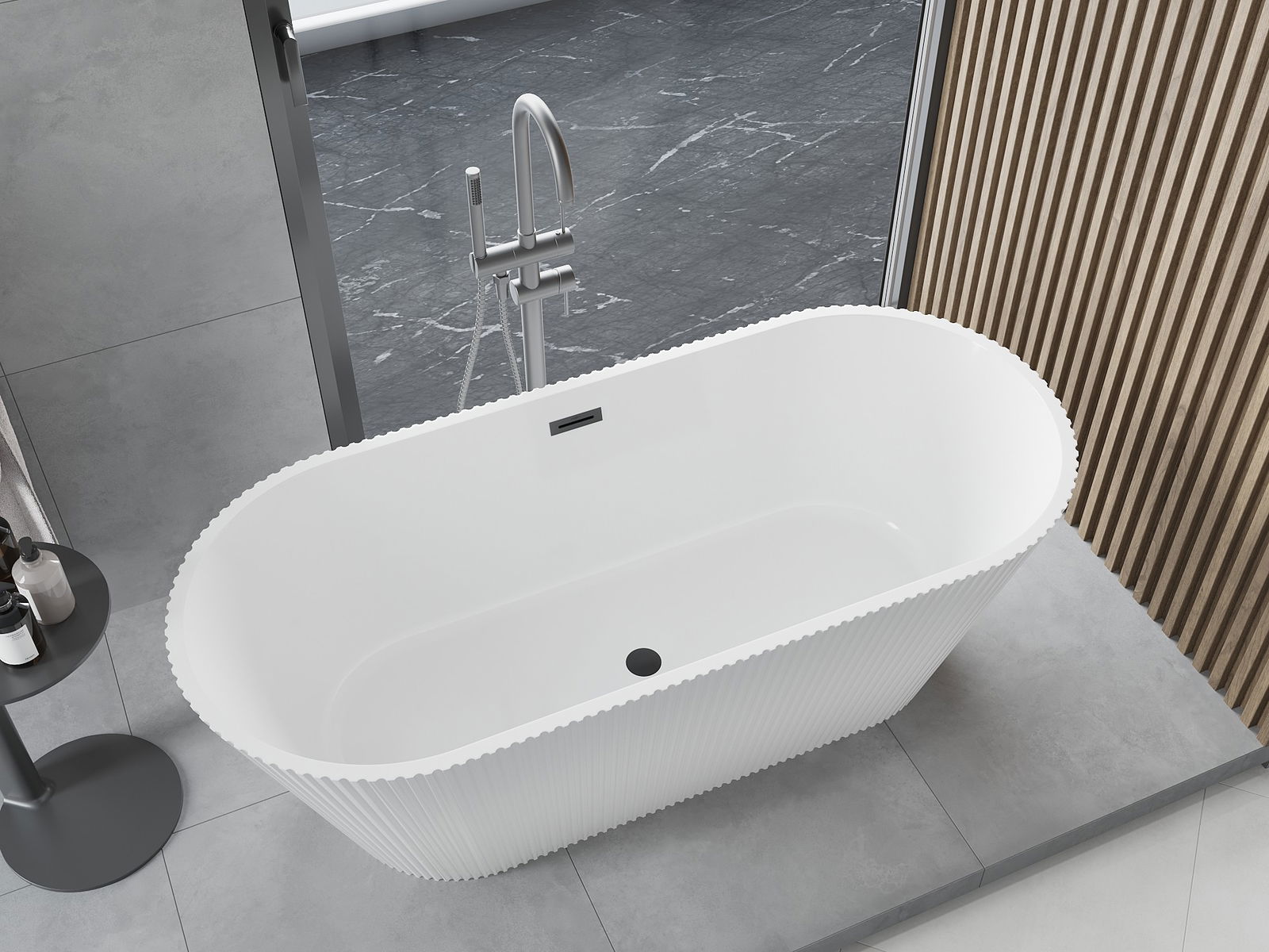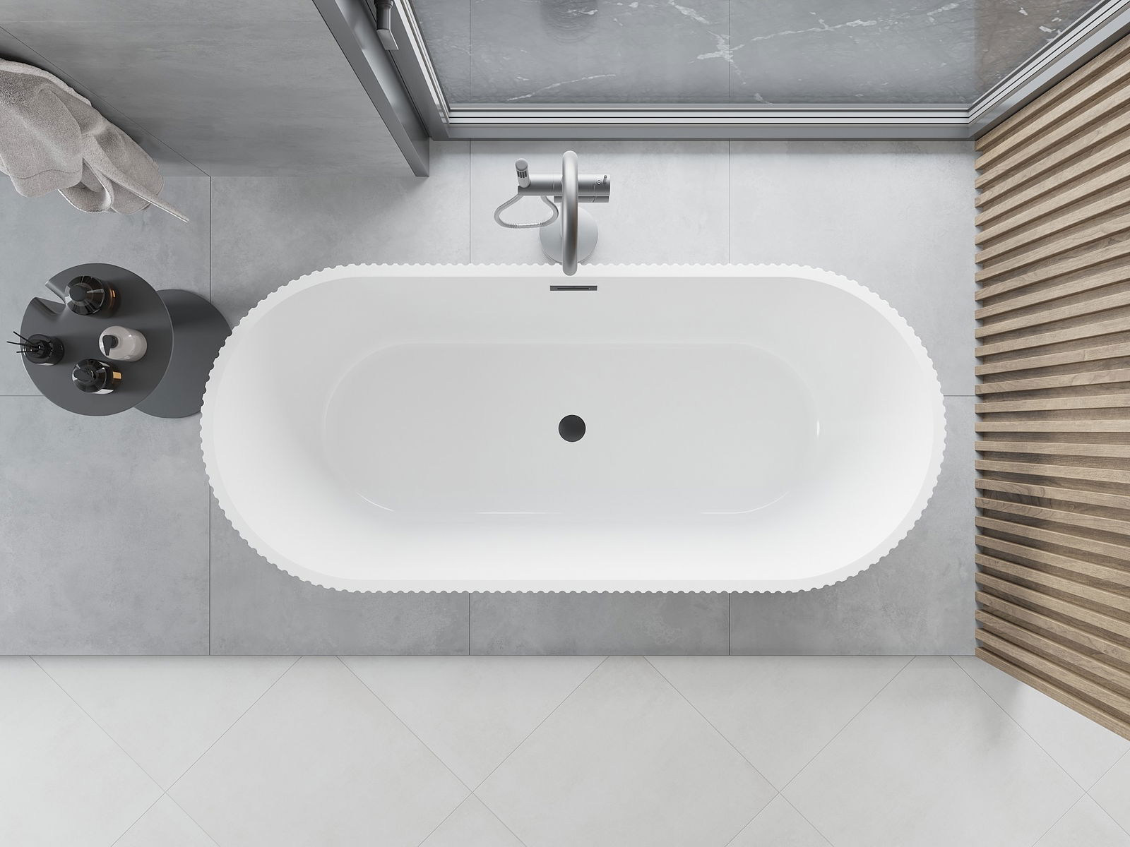 This is a modern material combining an elegant appearance with high durability. It is resistant to mechanical damage, easy to clean, and pleasant to the touch. The transparent form and thin rim of the bathtub add lightness and unique character, creating an impactful accent in bathroom design.