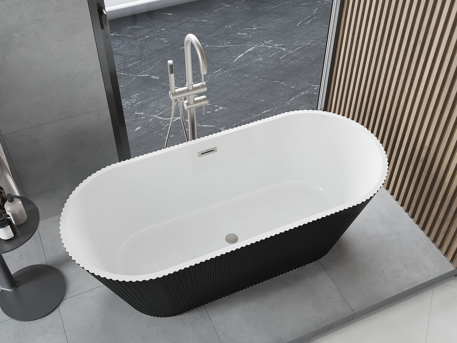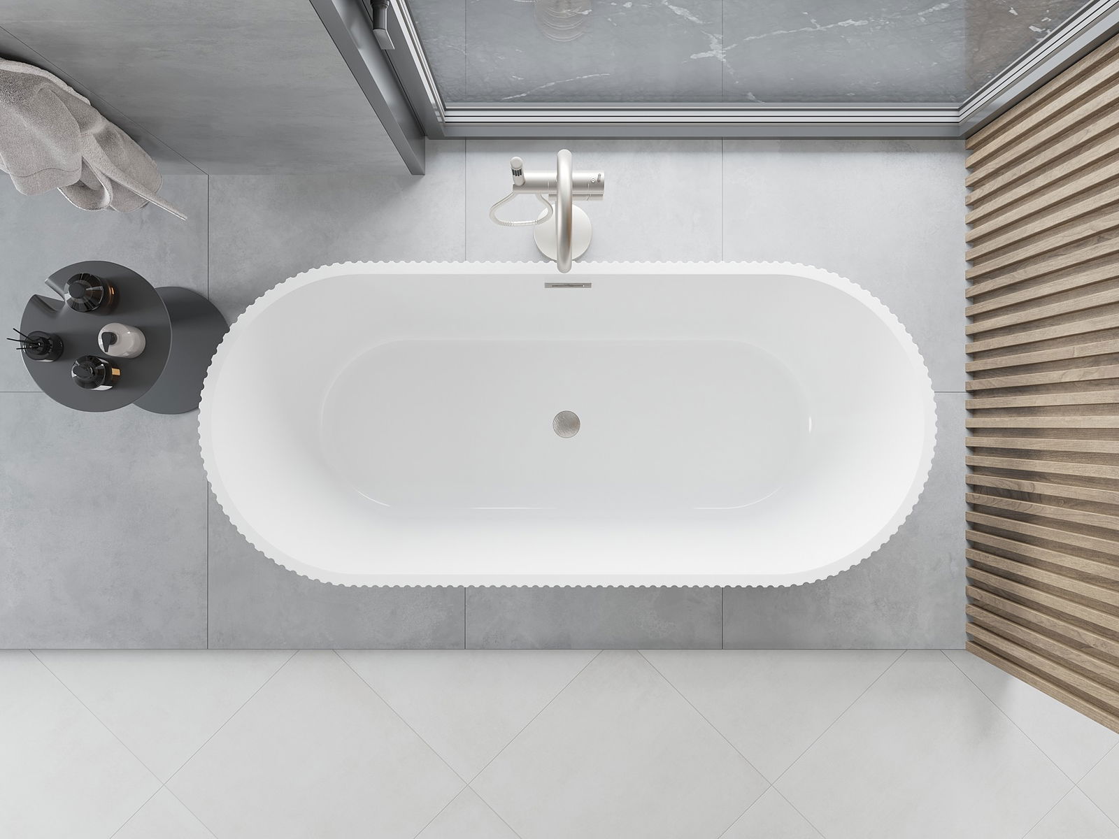 This is a modern material combining an elegant appearance with high durability. It is resistant to mechanical damage, easy to clean, and pleasant to the touch. The transparent form and thin rim of the bathtub add lightness and unique character, creating an impactful accent in bathroom design.