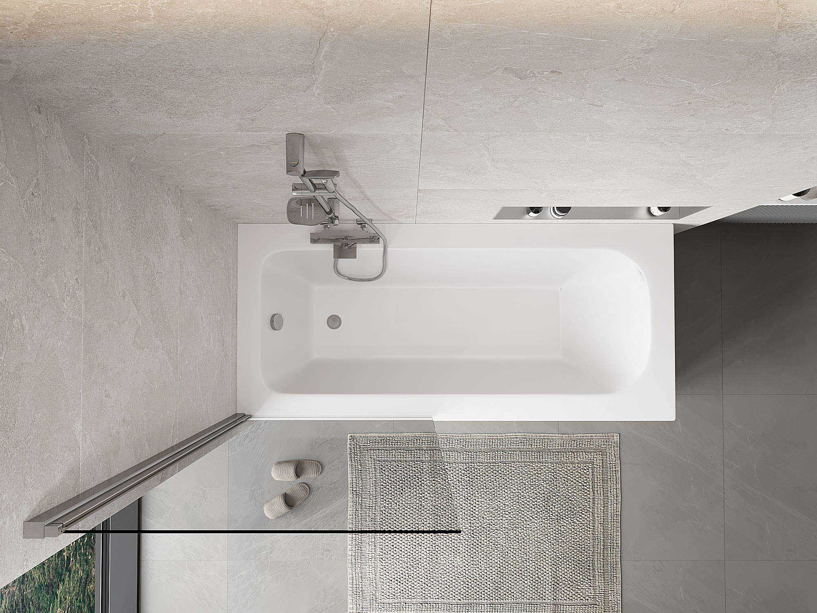 Effective protection against water spilling during bathing. The screen has seals that perfectly fit the glass surface and the edge of the bathtub. A functional solution ensuring safety and easy maintenance of cleanliness.
