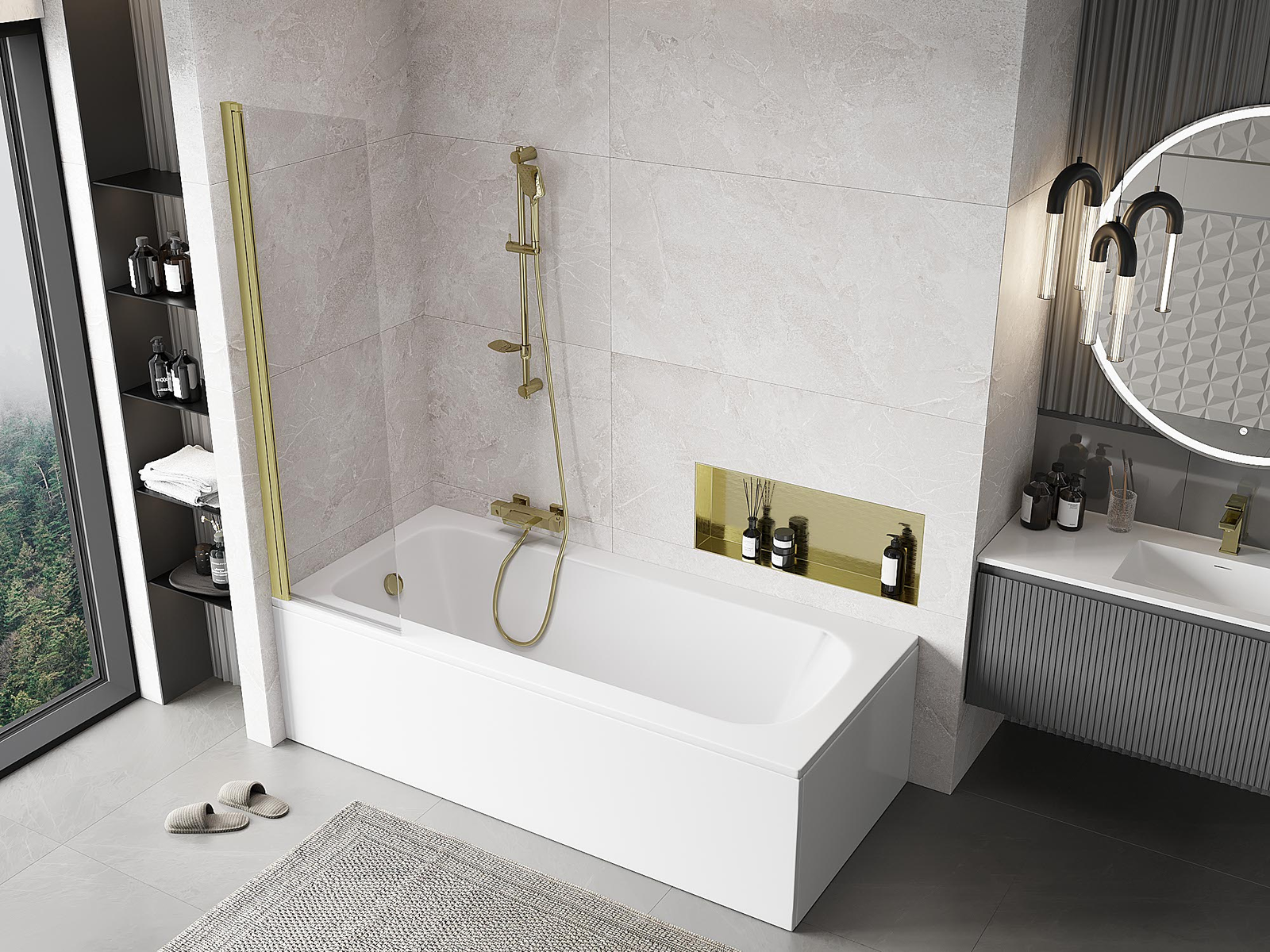 Effective protection against water spilling during bathing. The screen has seals that perfectly fit the glass surface and the edge of the bathtub. A functional solution ensuring safety and easy maintenance of cleanliness.