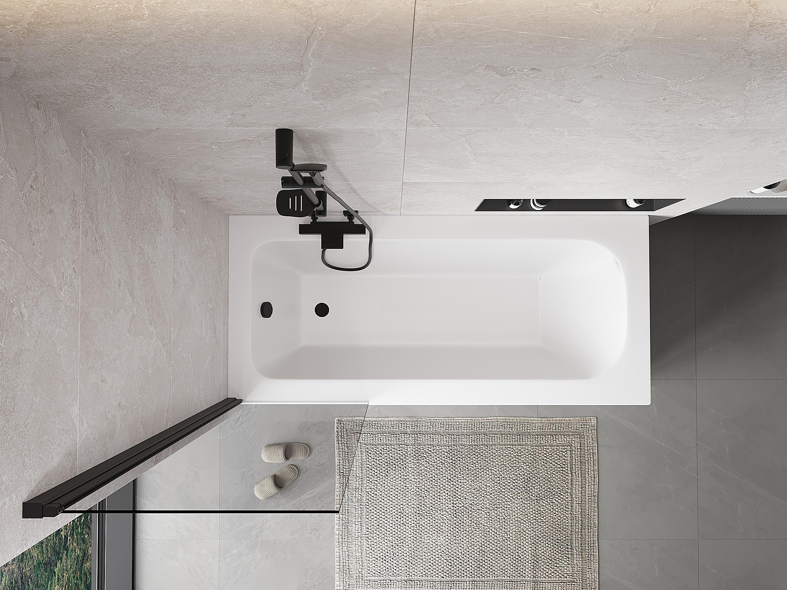 Effective protection against water spilling during bathing. The screen has seals that perfectly fit the glass surface and the edge of the bathtub. A functional solution ensuring safety and easy maintenance of cleanliness.