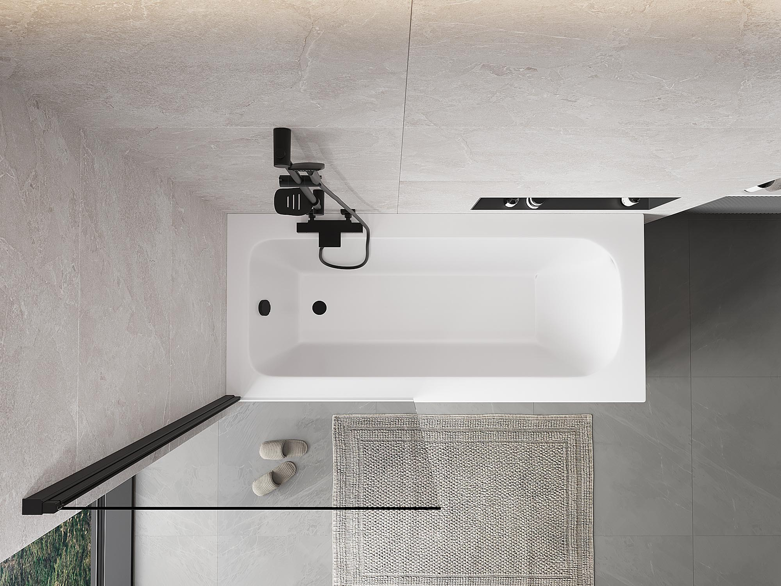 Effective protection against water spilling during bathing. The screen has seals that perfectly fit the glass surface and the edge of the bathtub. A functional solution ensuring safety and easy maintenance of cleanliness.