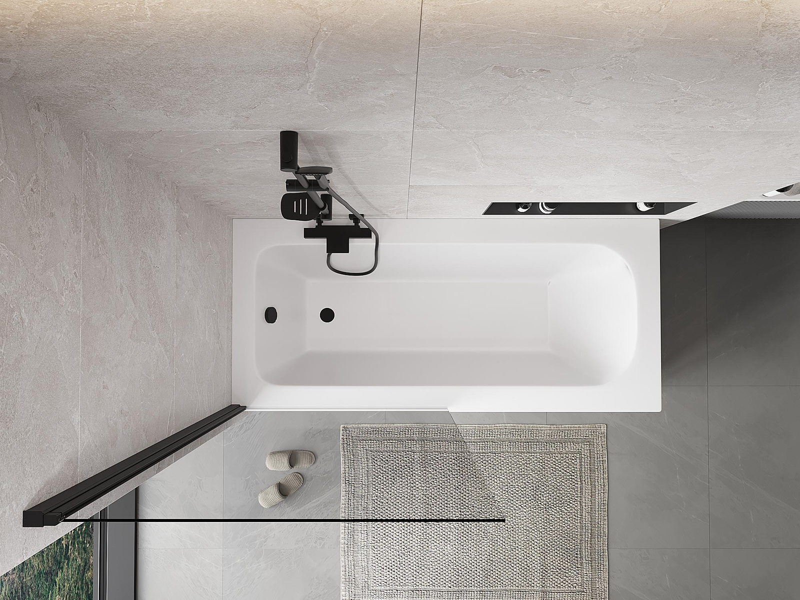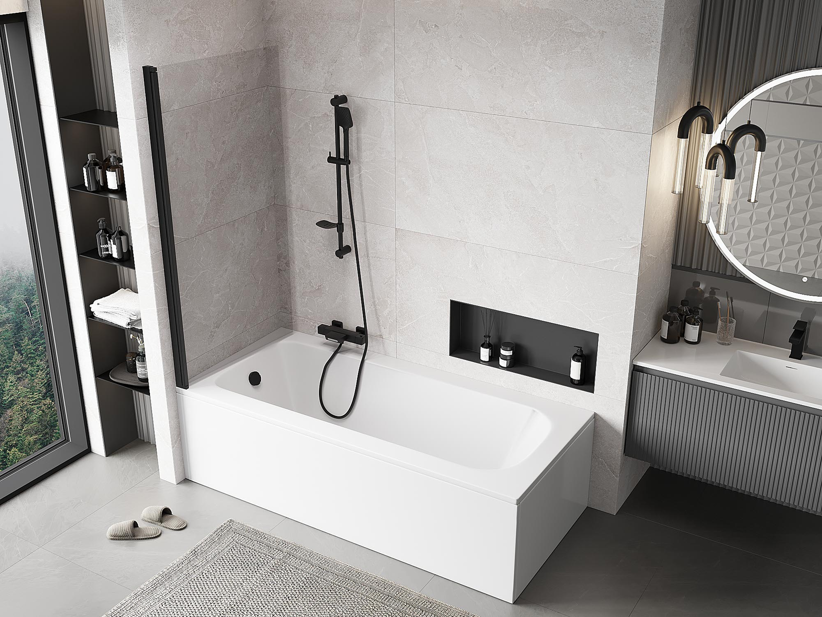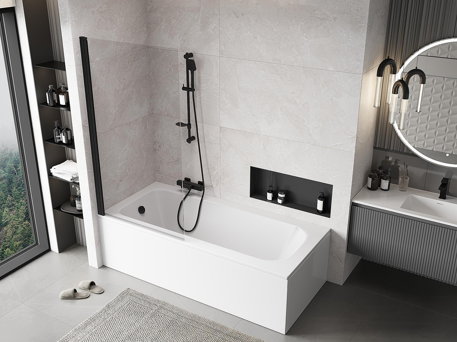 Effective protection against water spilling during bathing. The screen has seals that perfectly fit the glass surface and the edge of the bathtub. A functional solution ensuring safety and easy maintenance of cleanliness.