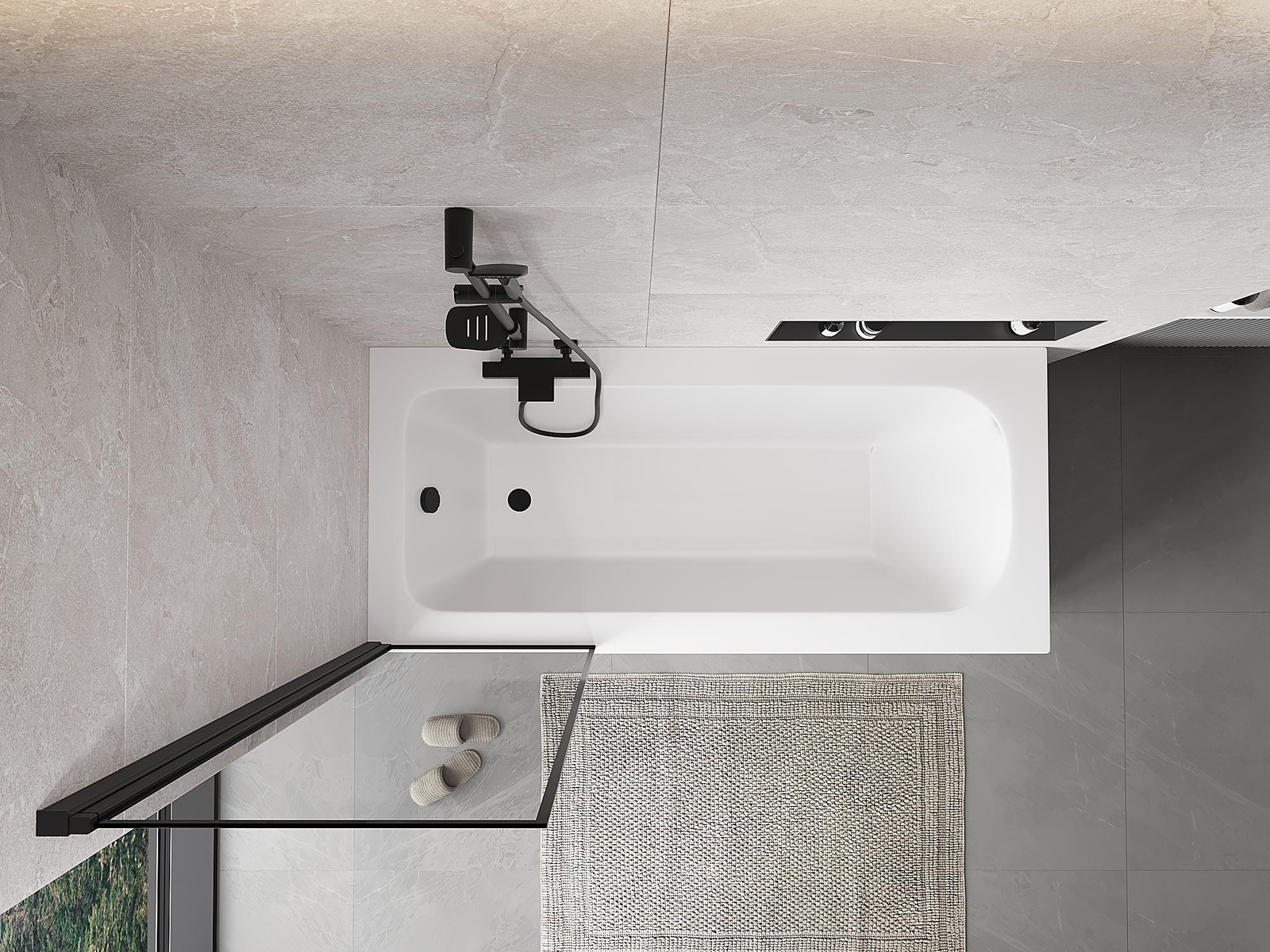 Effective protection against water spilling during bathing. The screen has seals that perfectly fit the glass surface and the edge of the bathtub. A functional solution ensuring safety and easy maintenance of cleanliness.