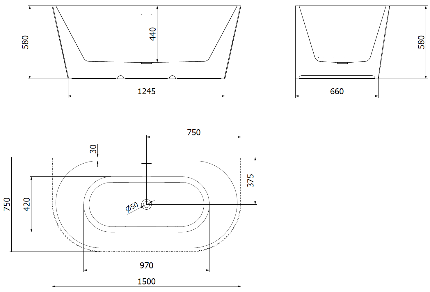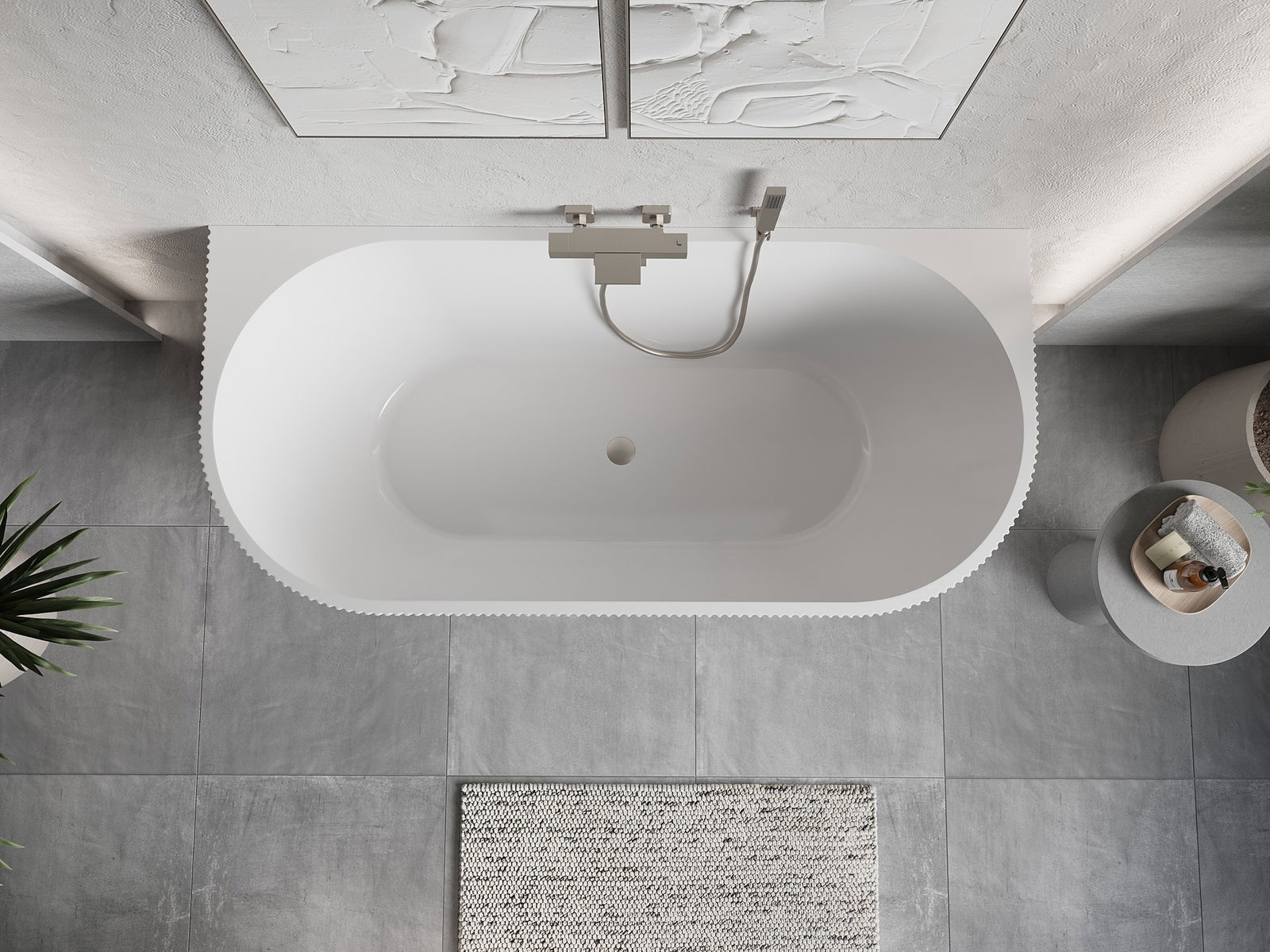 This is a modern material combining an elegant appearance with high durability. It is resistant to mechanical damage, easy to clean, and pleasant to the touch. The transparent form and thin rim of the bathtub add lightness and unique character, creating an impactful accent in bathroom design.