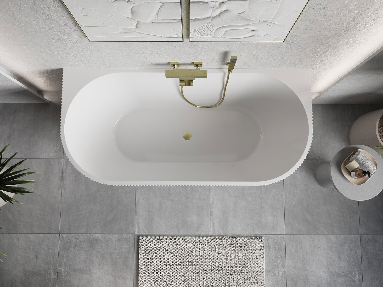 This is a modern material combining an elegant appearance with high durability. It is resistant to mechanical damage, easy to clean, and pleasant to the touch. The transparent form and thin rim of the bathtub add lightness and unique character, creating an impactful accent in bathroom design.