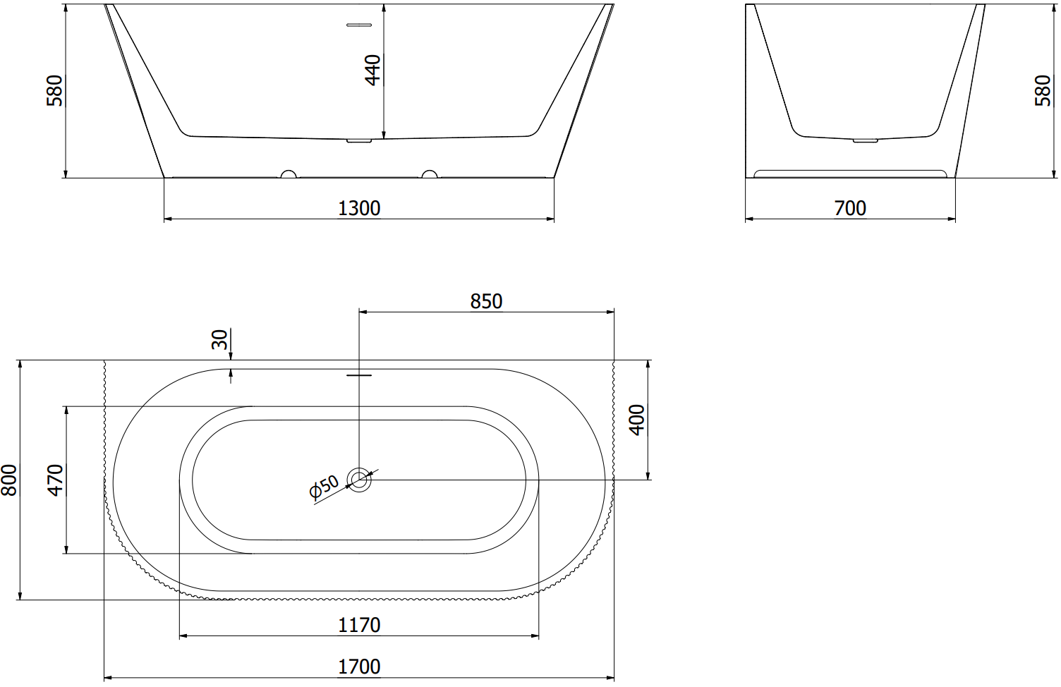 The overflow opening is referred to as the "safety opening". It allows excess water to escape, protecting the bathroom from flooding. This is a safe and practical solution that lets you enjoy a bath without worrying about the water level rising.
