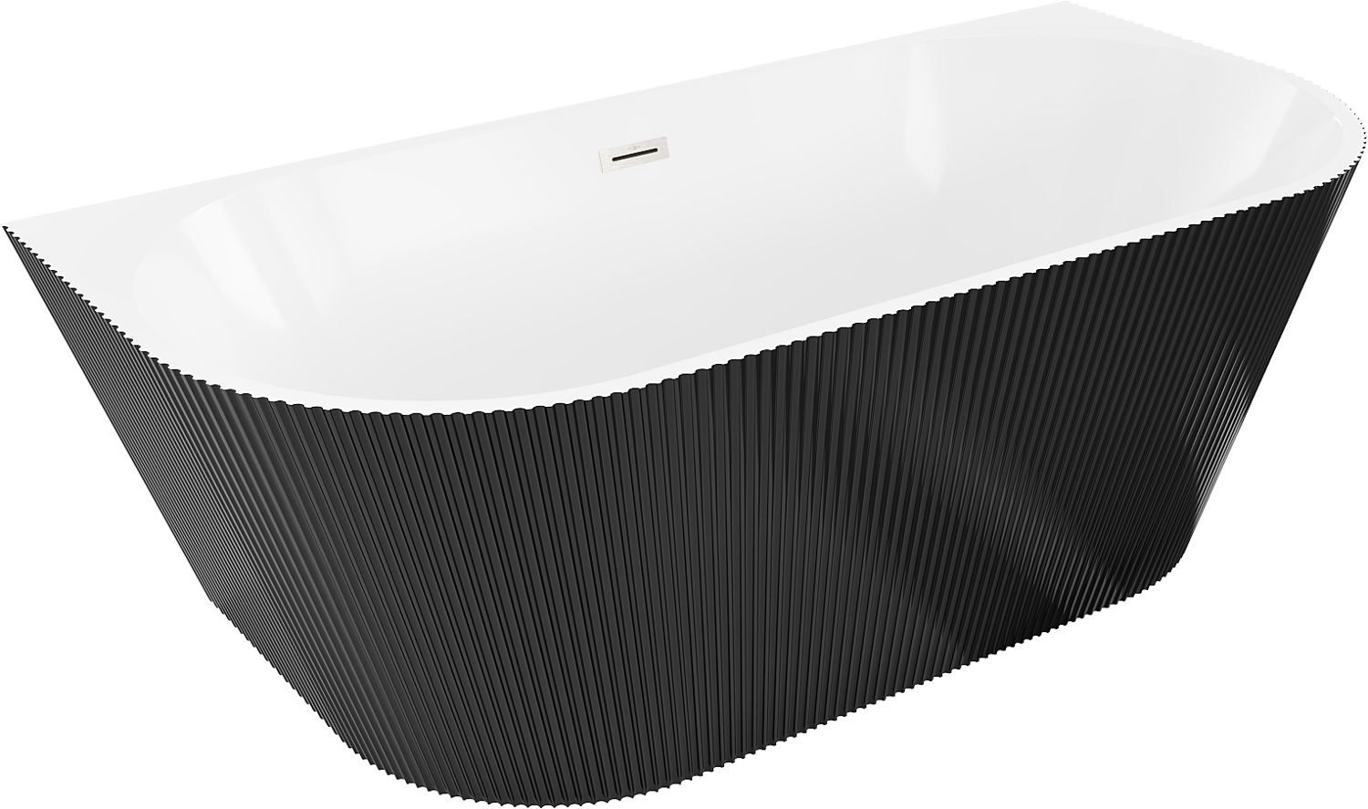 Mexen Oris free-standing ribbed wall bath 170 x 80 cm, white/black, brushed nickel overflow - 52871708075-97