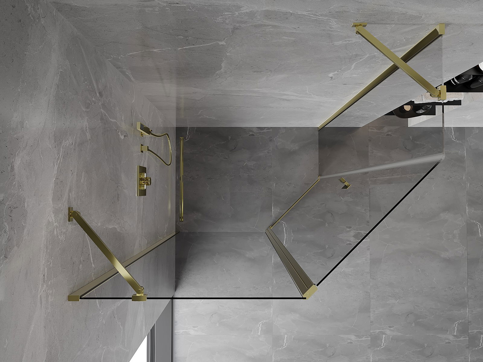 Mexen Mist asymmetrical pentagonal shower enclosure with hinged doors 90 x 80 cm, transparent, gold - 8A8-090-080-50-00