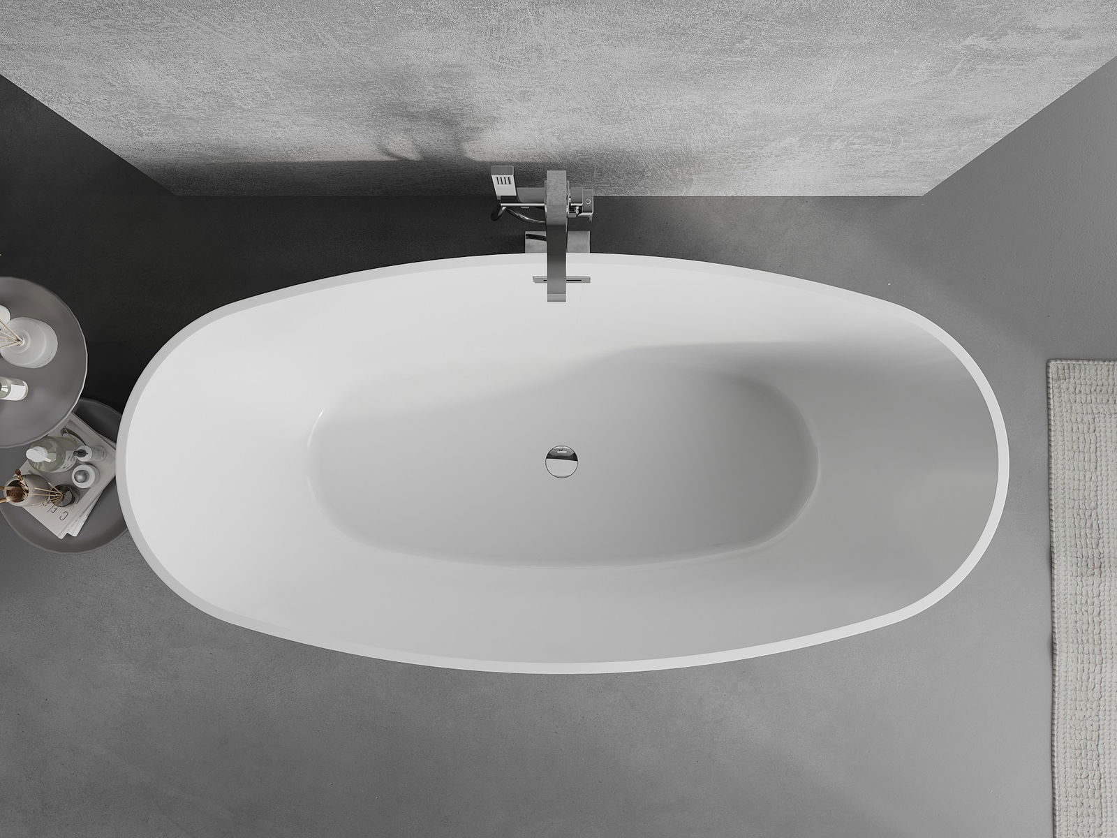 This is a modern material combining an elegant appearance with high durability. It is resistant to mechanical damage, easy to clean, and pleasant to the touch. The transparent form and thin rim of the bathtub add lightness and unique character, creating an impactful accent in bathroom design.