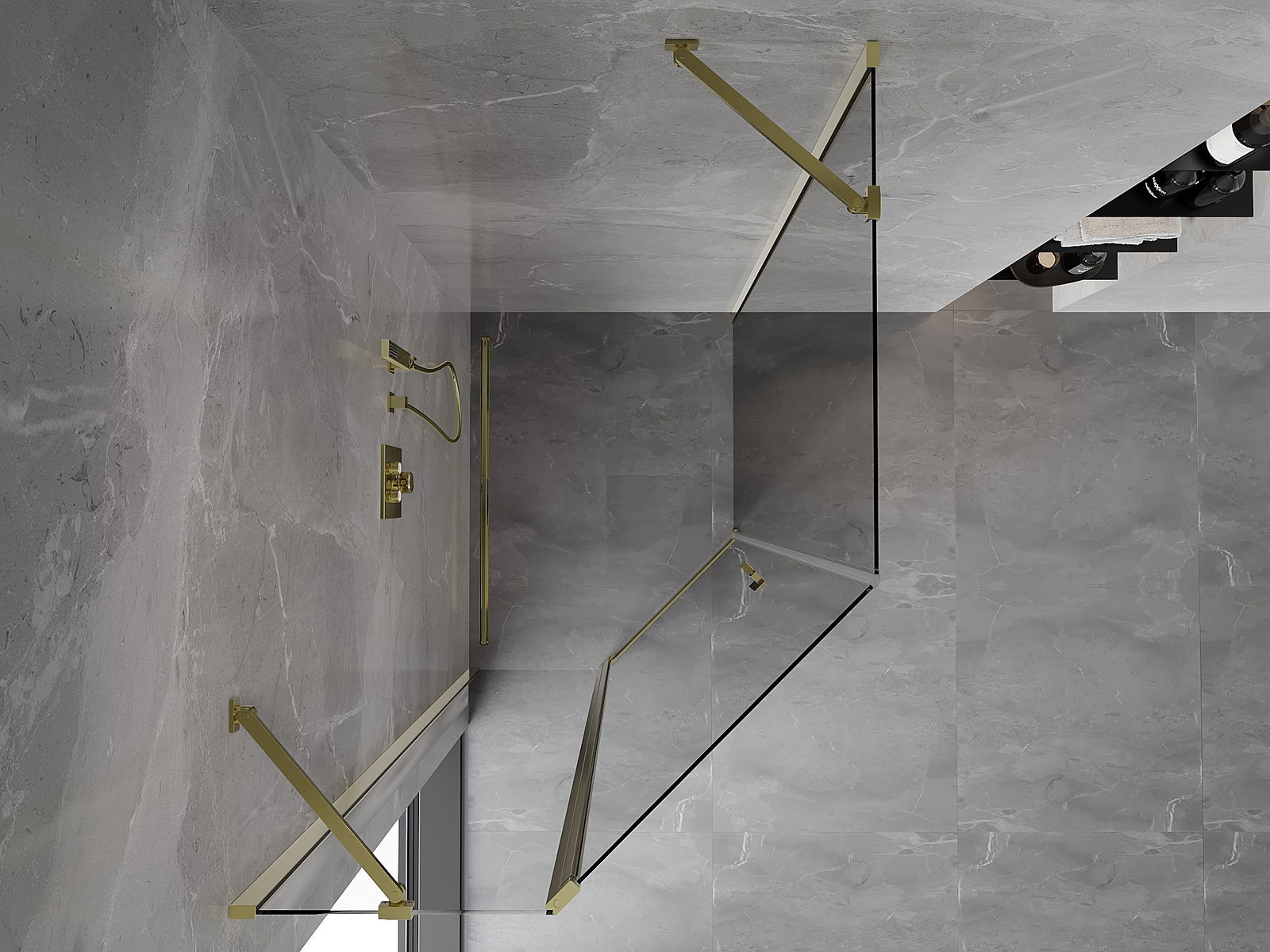 Mexen Mist asymmetrical pentagonal shower cabin with hinged door 80 x 90 cm, transparent, gold - 8A8-080-090-50-00