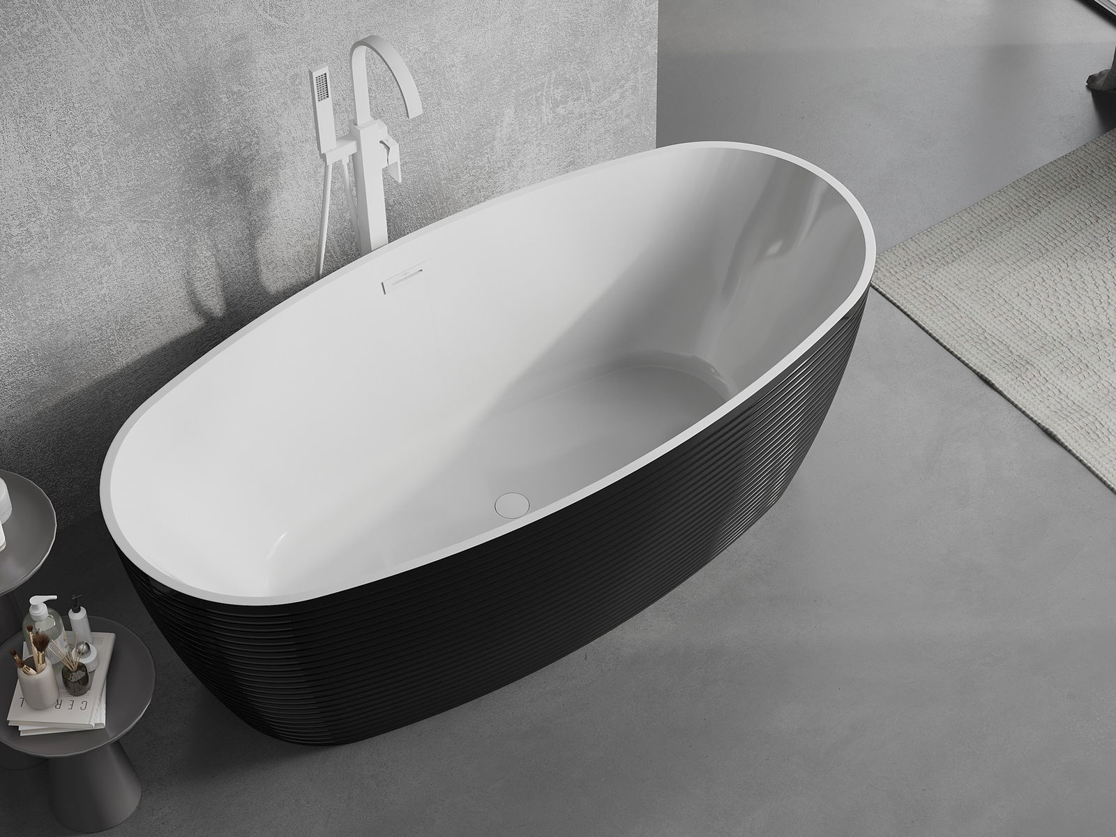 This is a modern material combining an elegant appearance with high durability. It is resistant to mechanical damage, easy to clean, and pleasant to the touch. The transparent form and thin rim of the bathtub add lightness and unique character, creating an impactful accent in bathroom design.