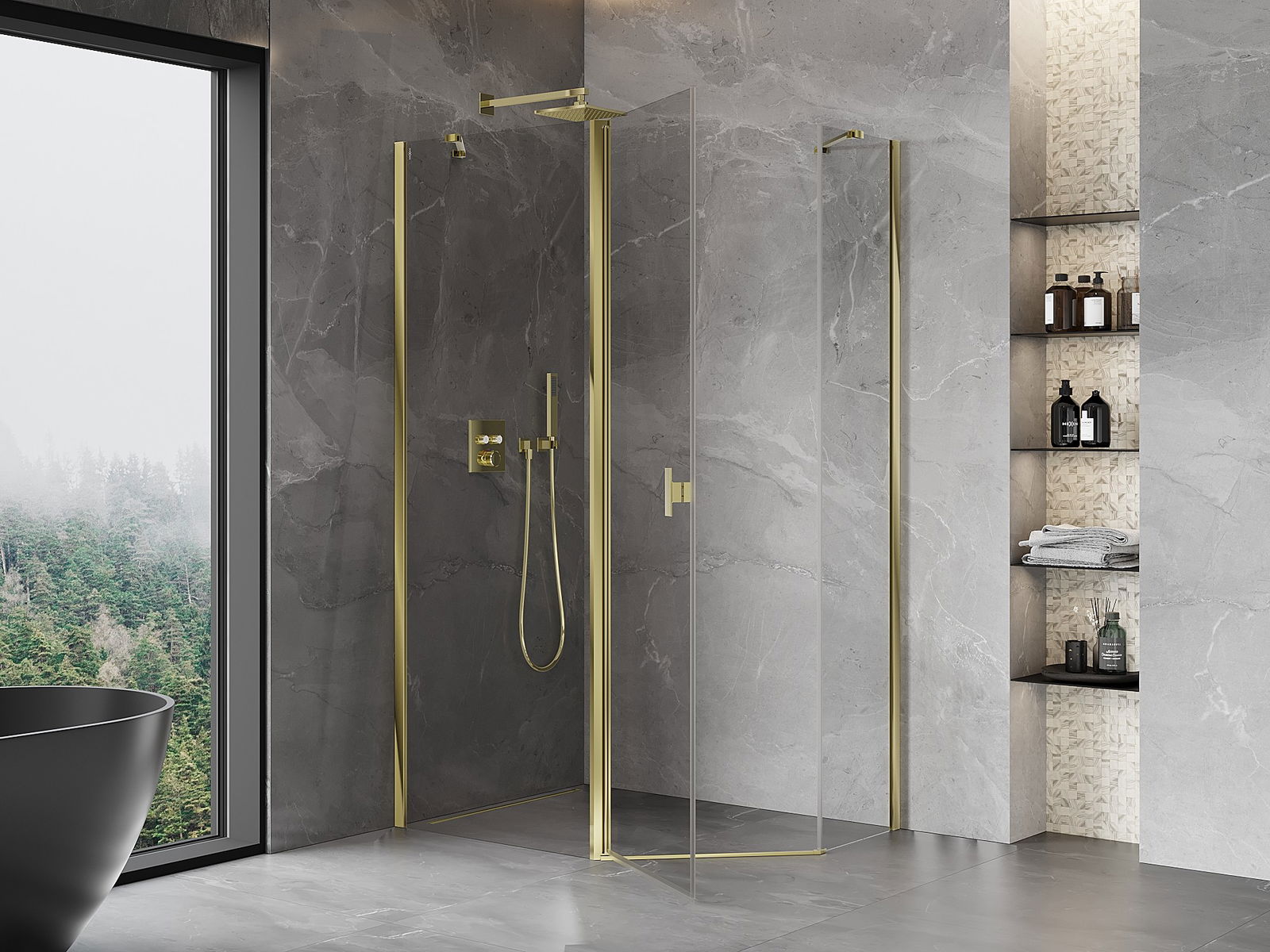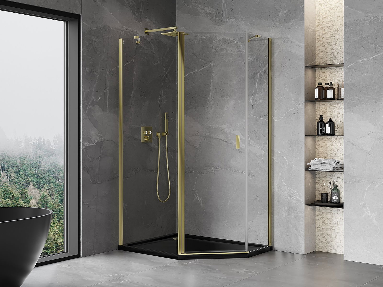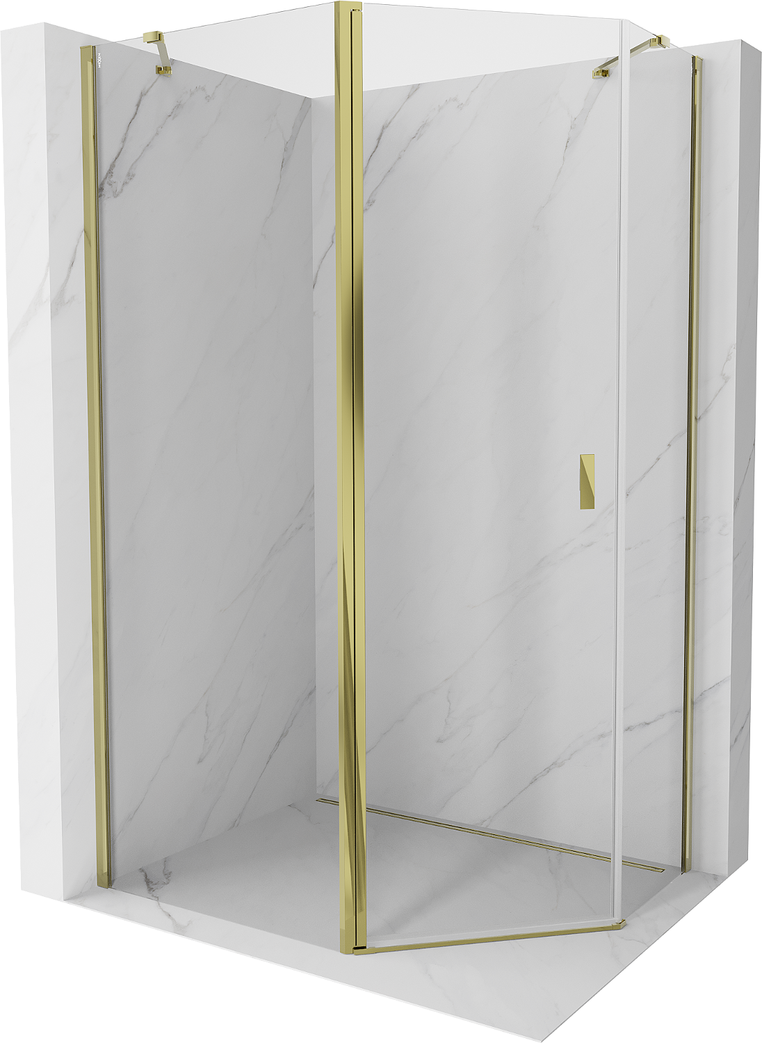 Mexen Mist asymmetrical pentagon shower enclosure 100 x 90 cm, transparent, gold - 8A8-100-090-50-00