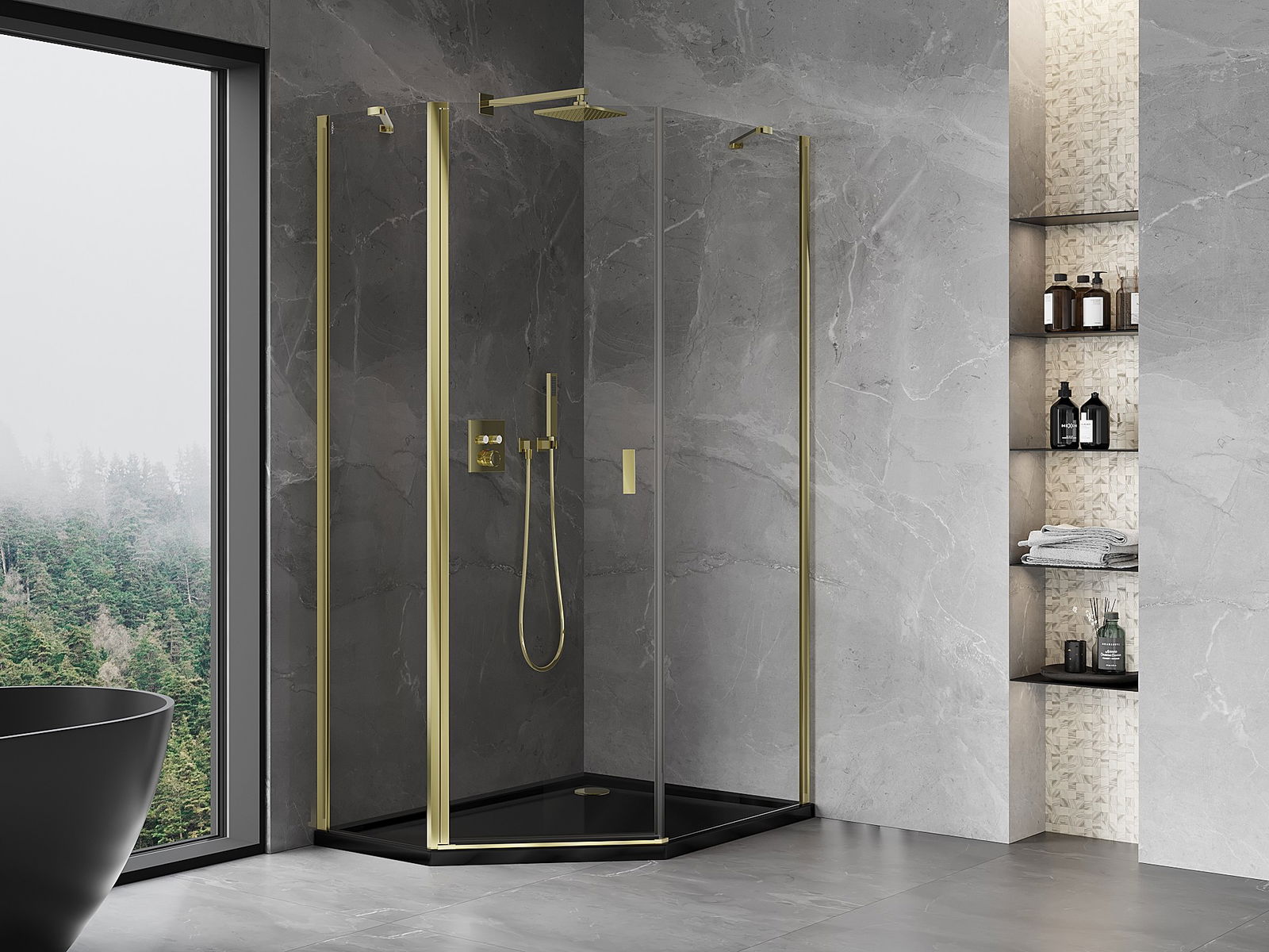 Mexen Mist asymmetrical pentagonal shower cabin 80 x 100 cm, transparent, gold - 8A8-080-100-50-00
