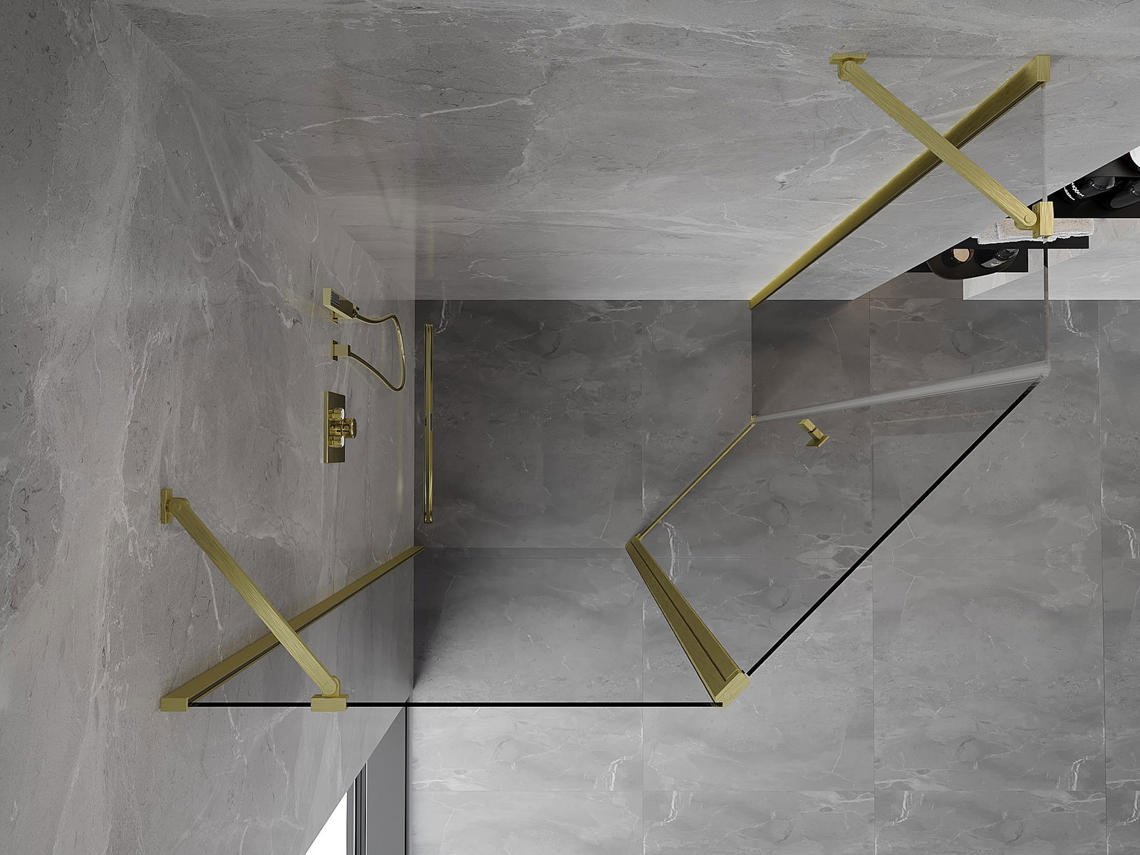Mexen Mist asymmetric pentagonal shower enclosure with hinged door 100 x 80 cm, transparent, brushed gold - 8A8-100-080-55-00