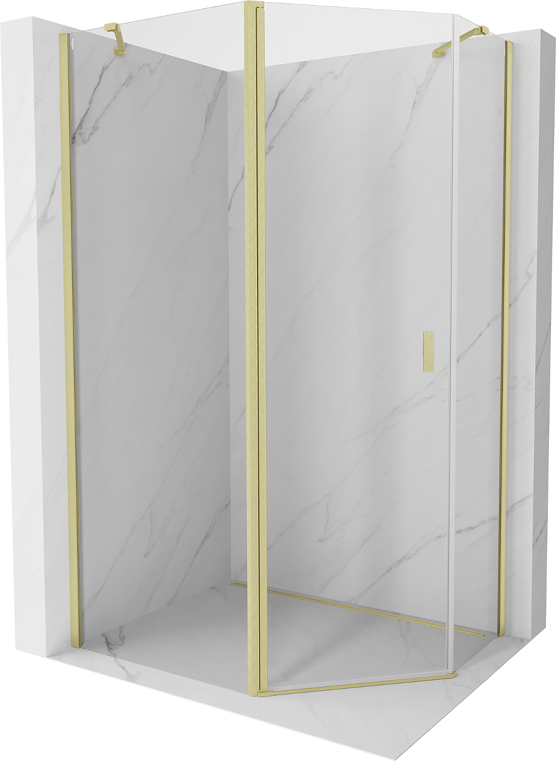 Mexen Mist pentagonal asymmetrical hinged shower cabin 100 x 90 cm, transparent, brushed gold - 8A8-100-090-55-00