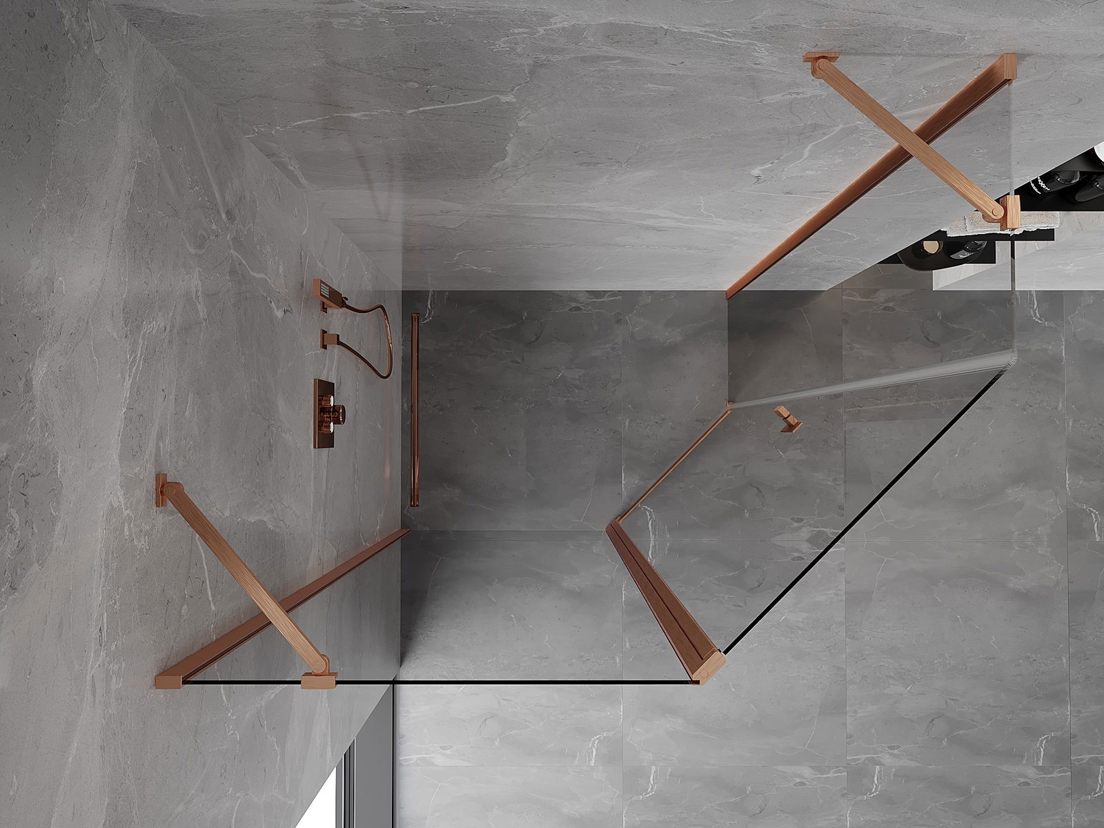 Mexen Mist pentagonal asymmetric hinged shower enclosure 100 x 80 cm, transparent, brushed copper - 8A8-100-080-65-00