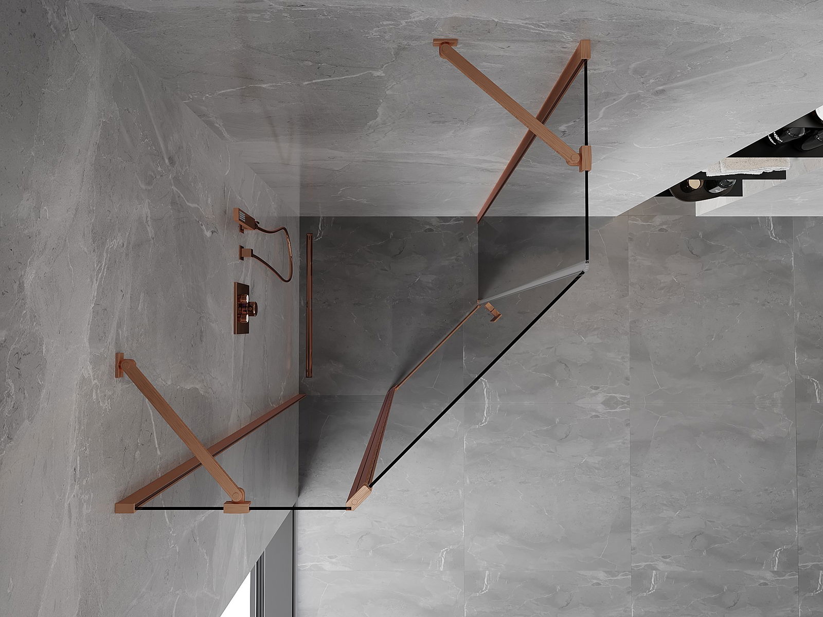 Mexen Mist pentagonal pivot shower cabin 90 x 90 cm, transparent, brushed copper - 8A8-090-090-65-00