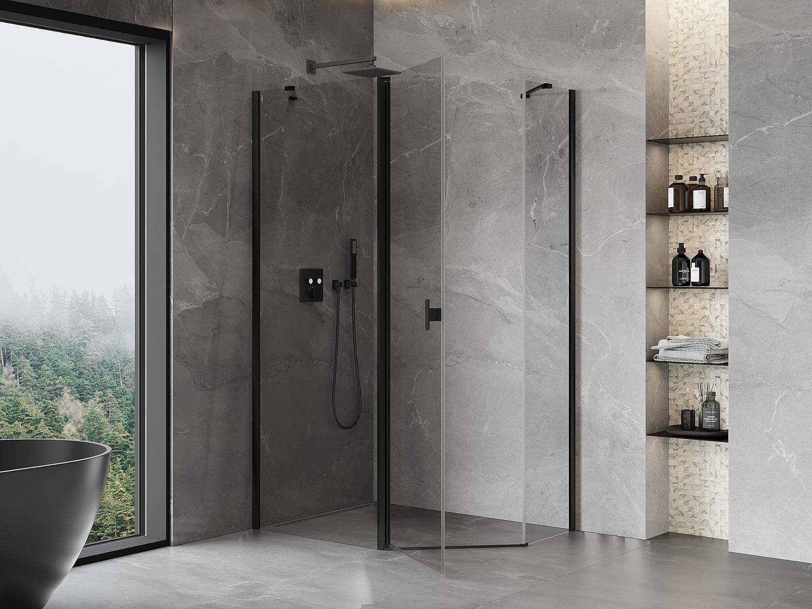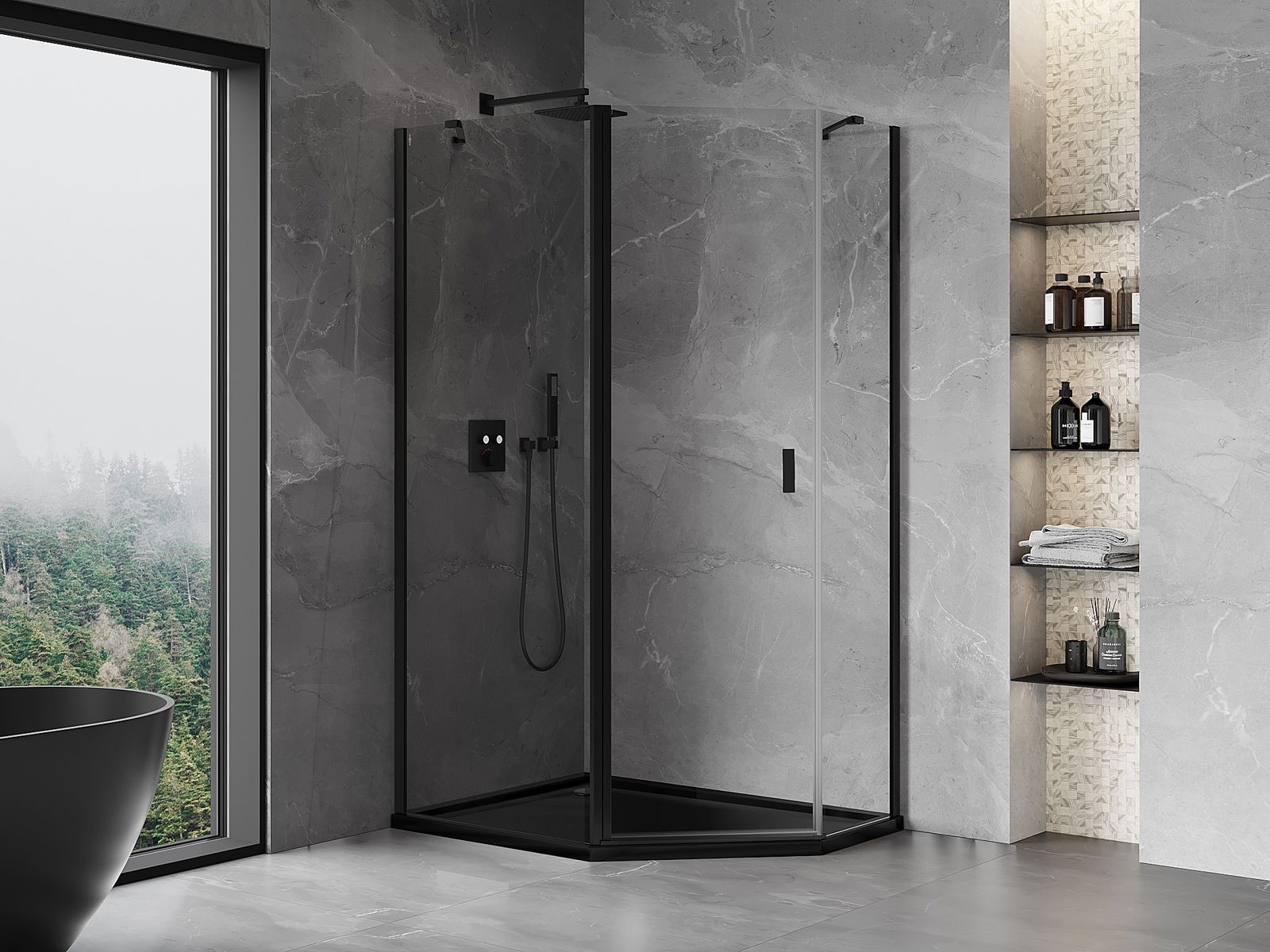 Mexen Mist pentagonal asymmetric swing shower cabin 90 x 80 cm, transparent, black - 8A8-090-080-70-00