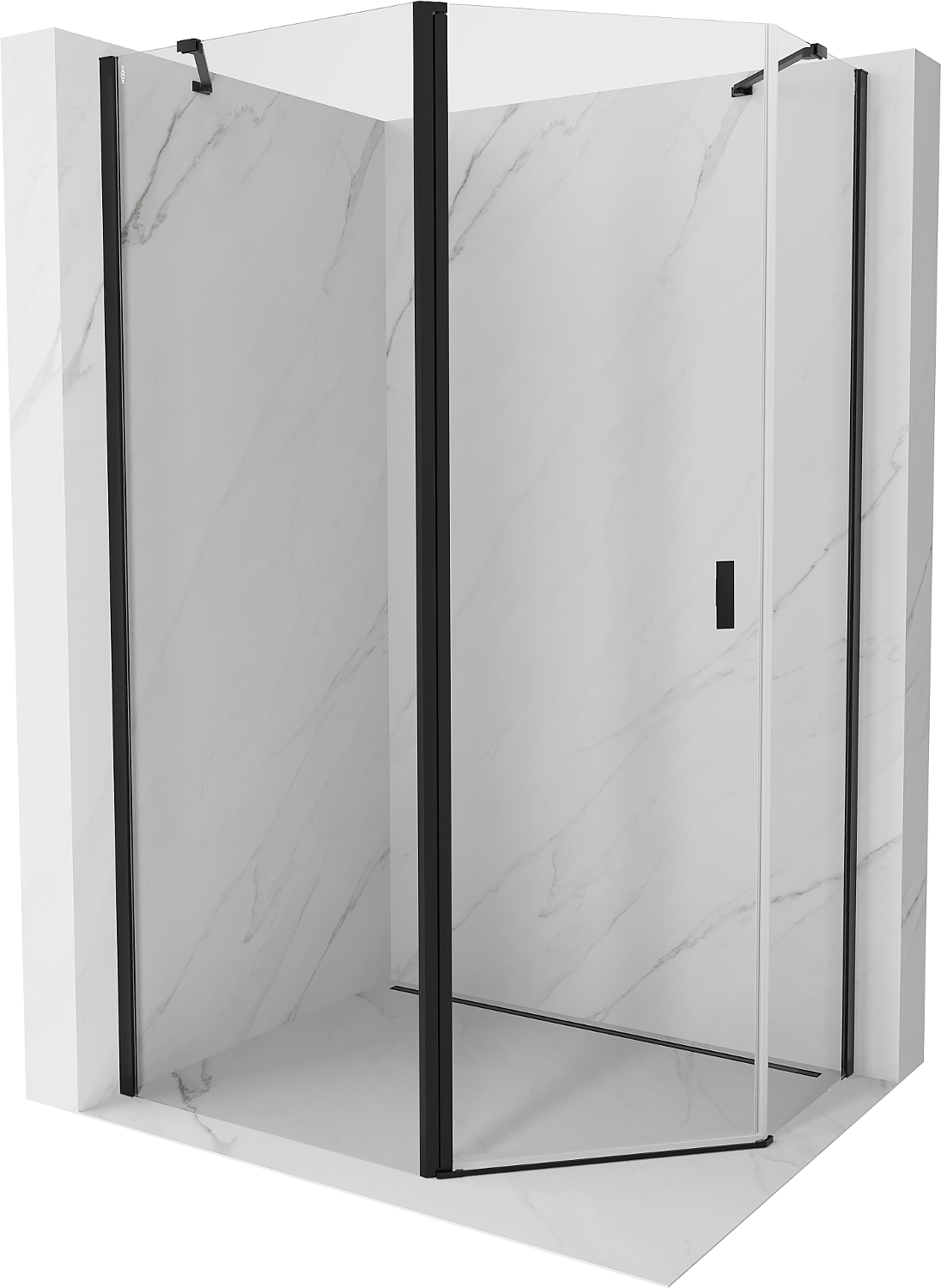 Mexen Mist asymmetrical pentagonal shower cabin with hinged door 100 x 80 cm, transparent, black - 8A8-100-080-70-00