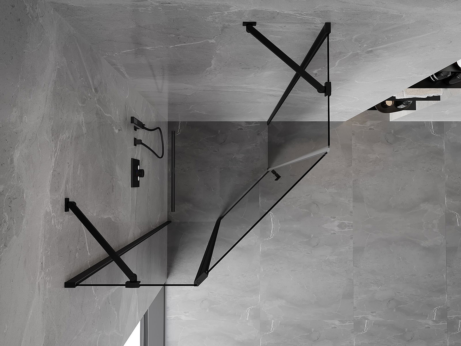 Mexen Mist pentagonal hinged shower enclosure 100 x 100 cm, transparent, black - 8A8-100-100-70-00
